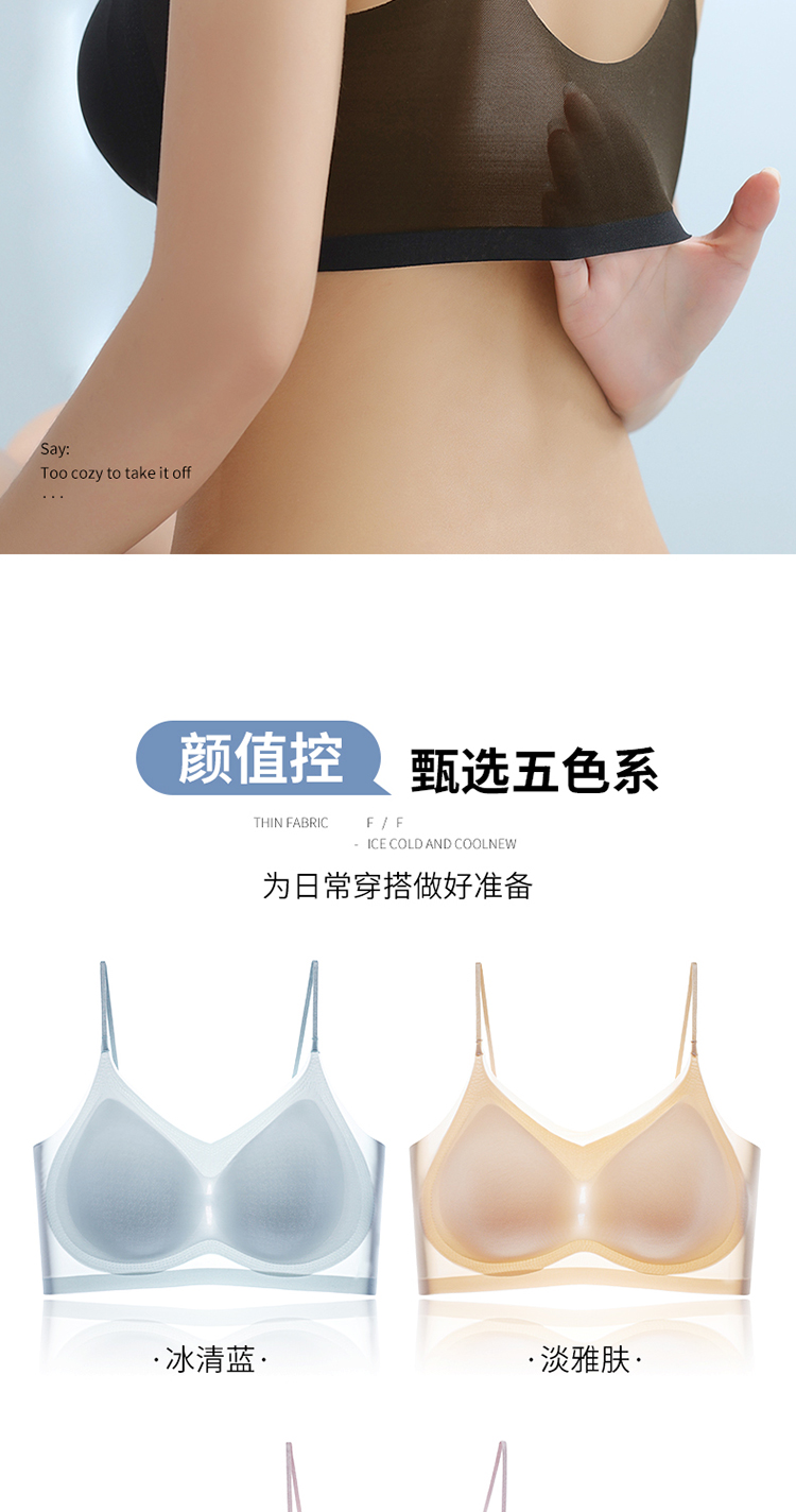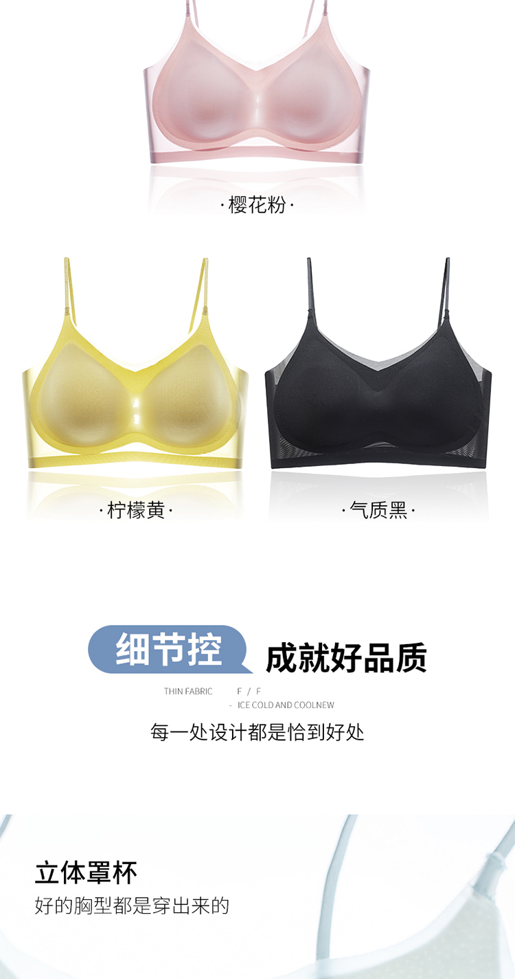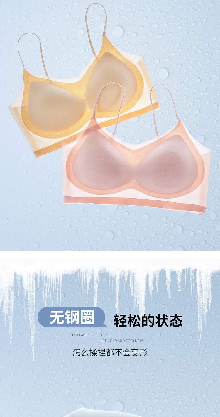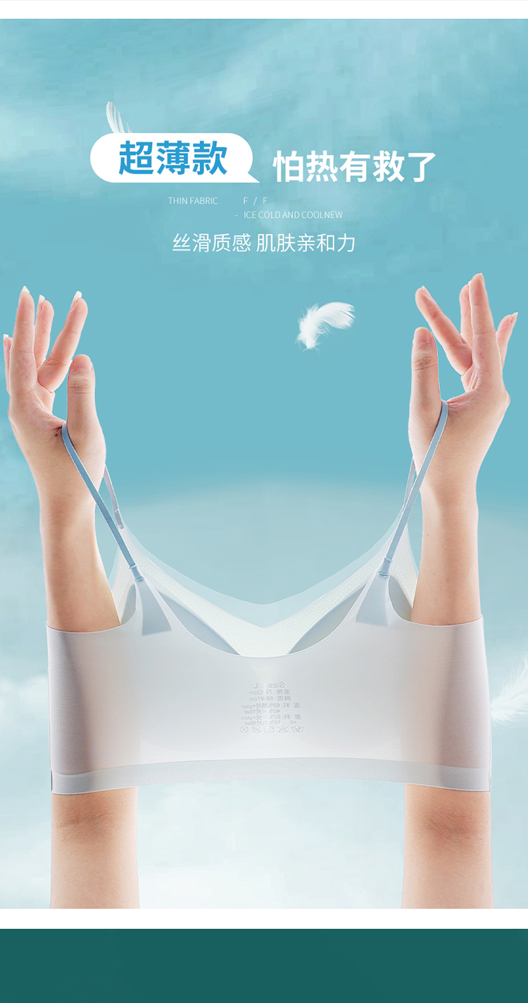 超薄凉感冰丝美背内衣夏季薄款女士无钢圈聚拢无痕抹胸吊带文胸罩