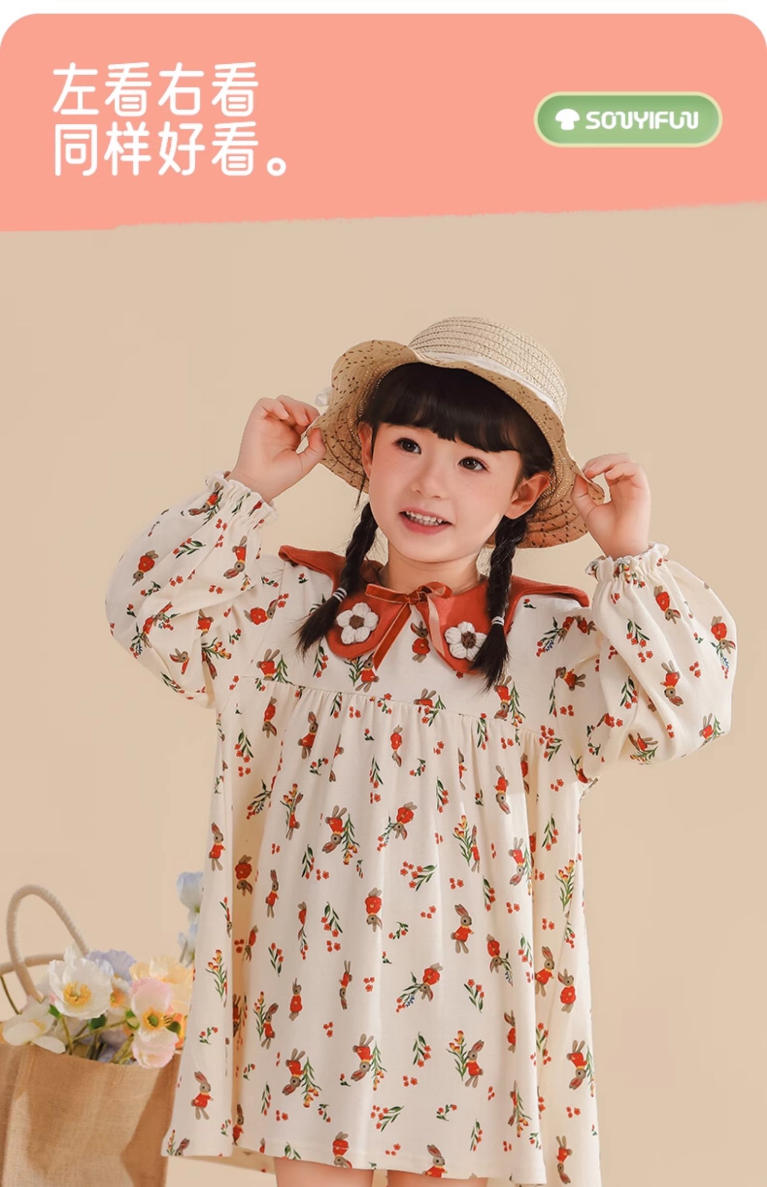 女宝宝秋装连衣裙春季纯棉森系小裙子长袖婴儿儿童女孩洋气公主裙