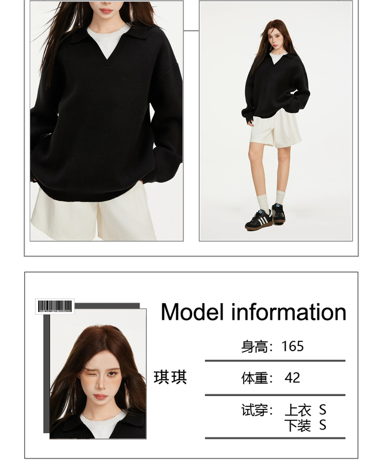 黑色正肩v领宽松长袖针织毛衣女秋冬早秋羊毛加厚设计感小众上衣