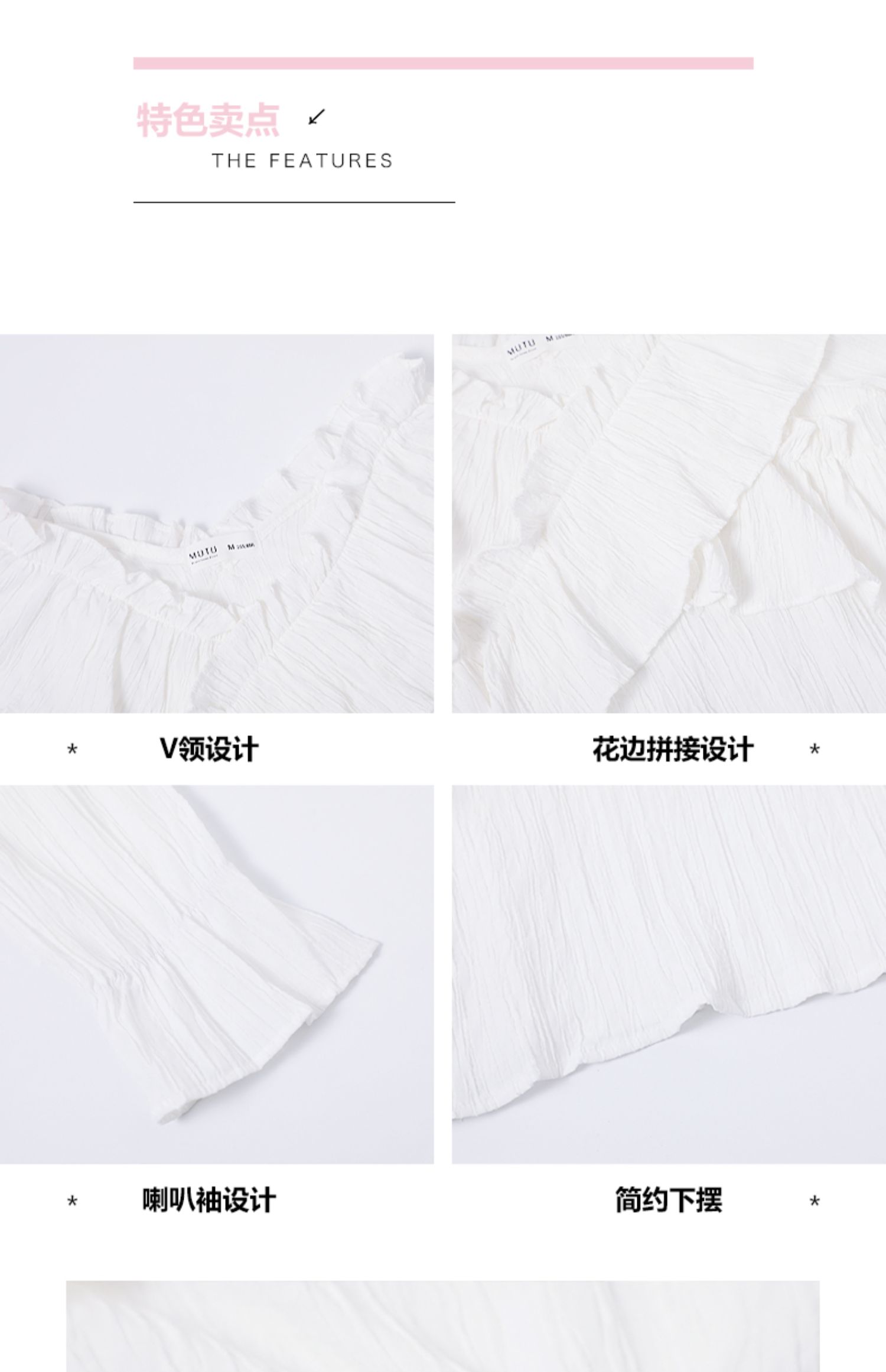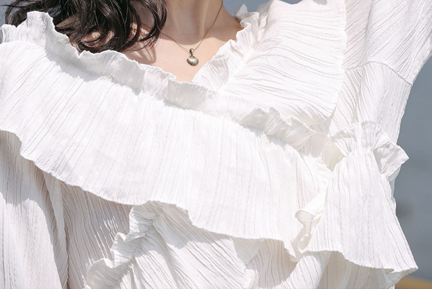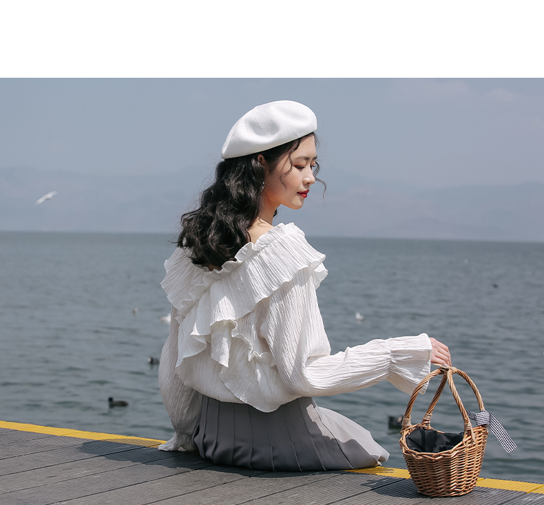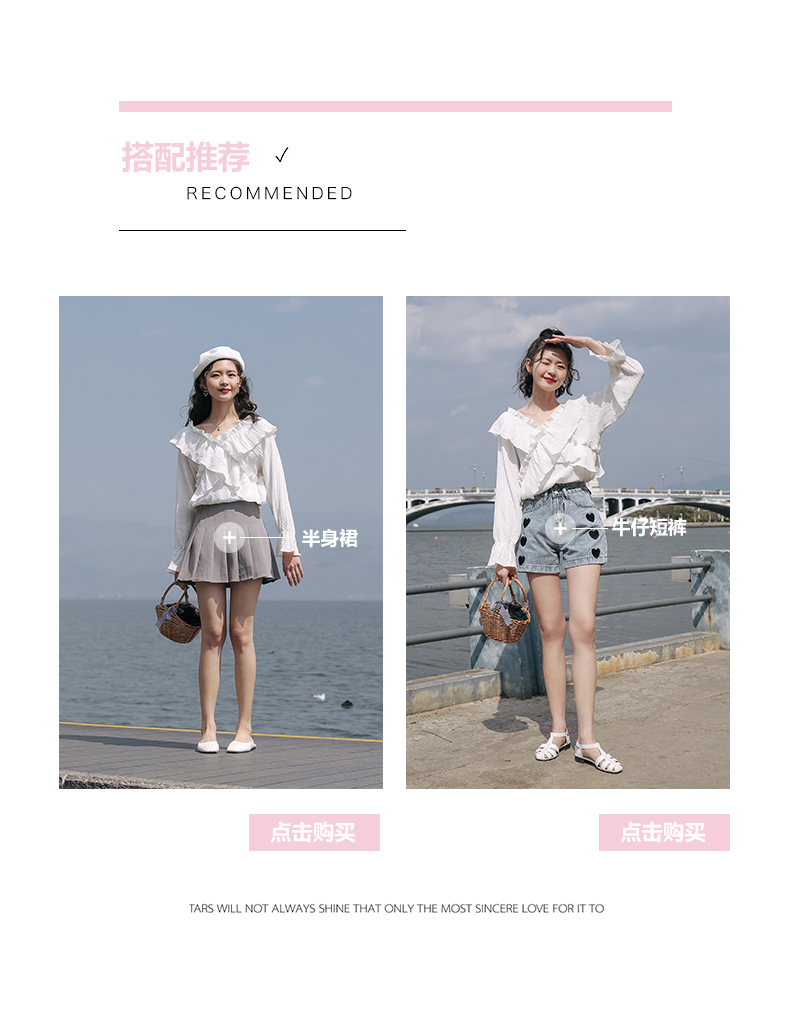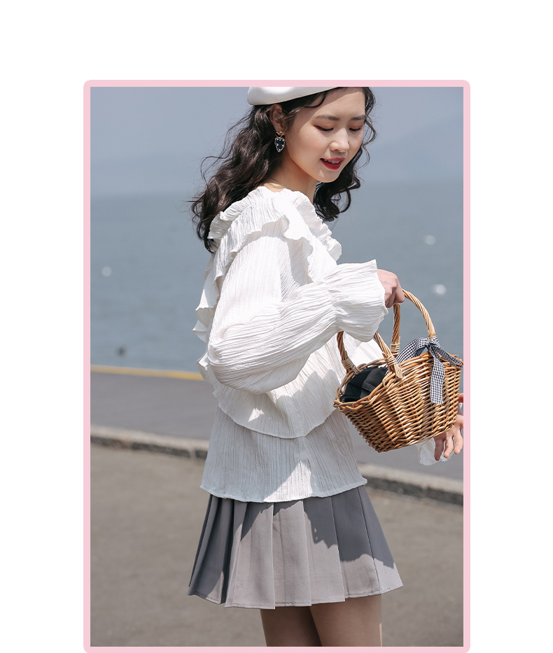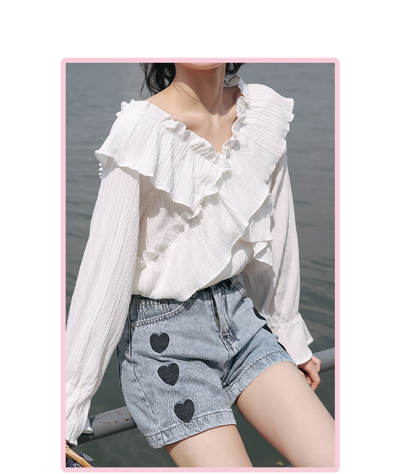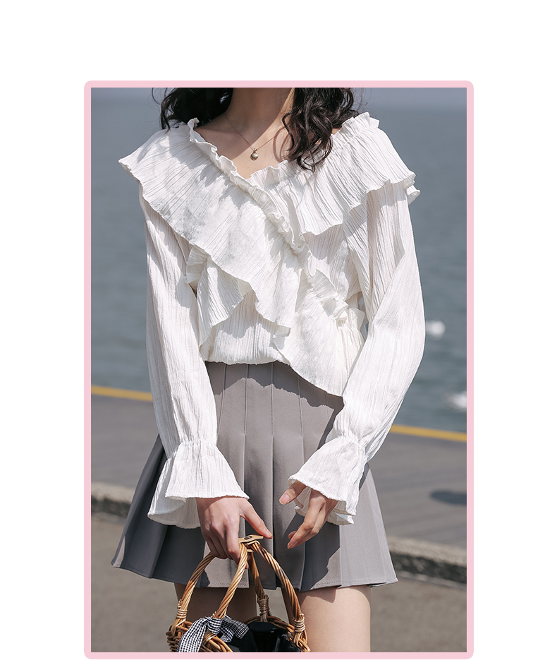 chic荷叶边甜系雪纺白衬衫女2024秋季新款V领设计感小众别致上衣