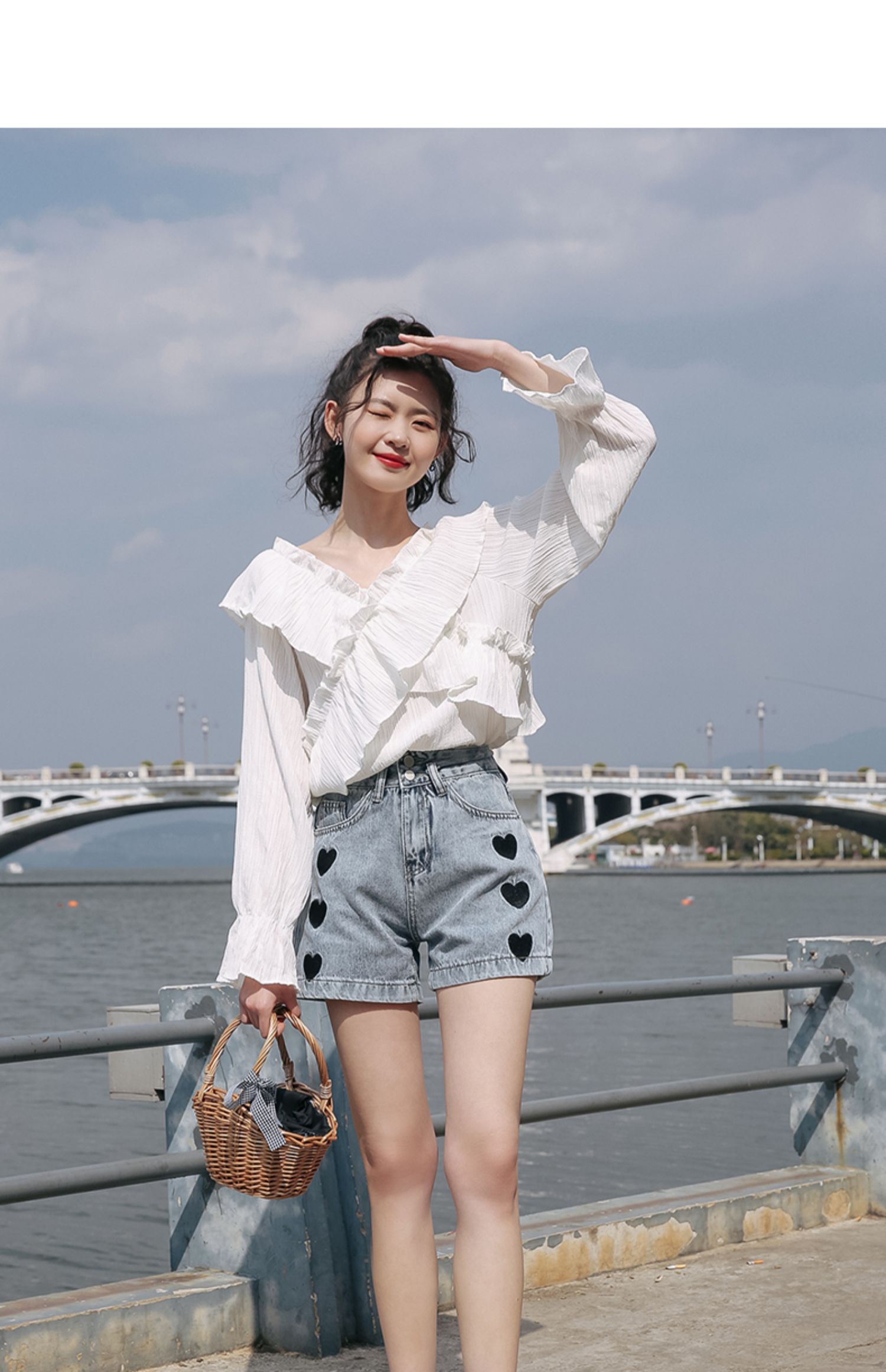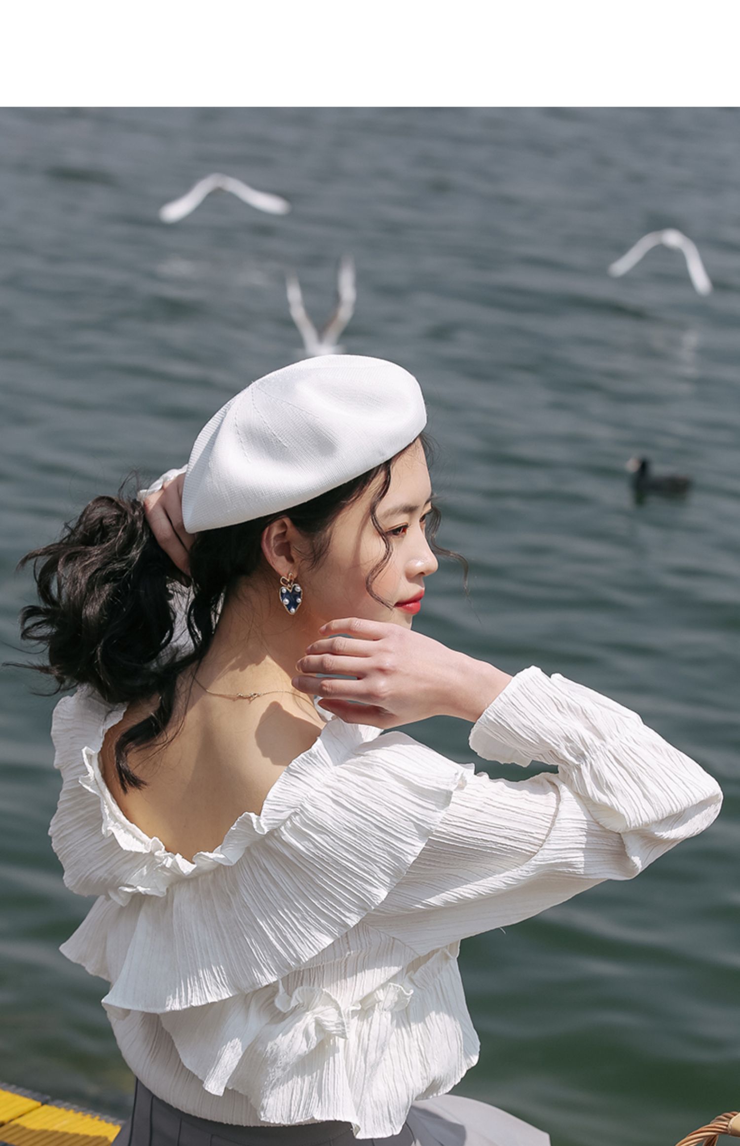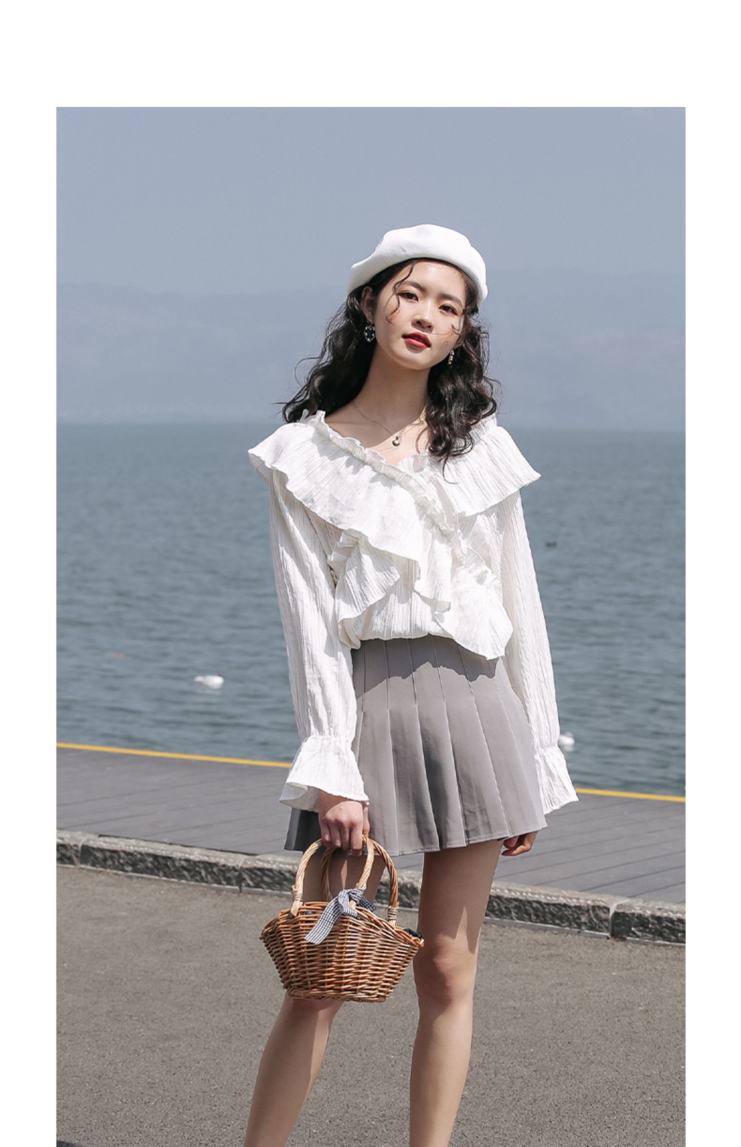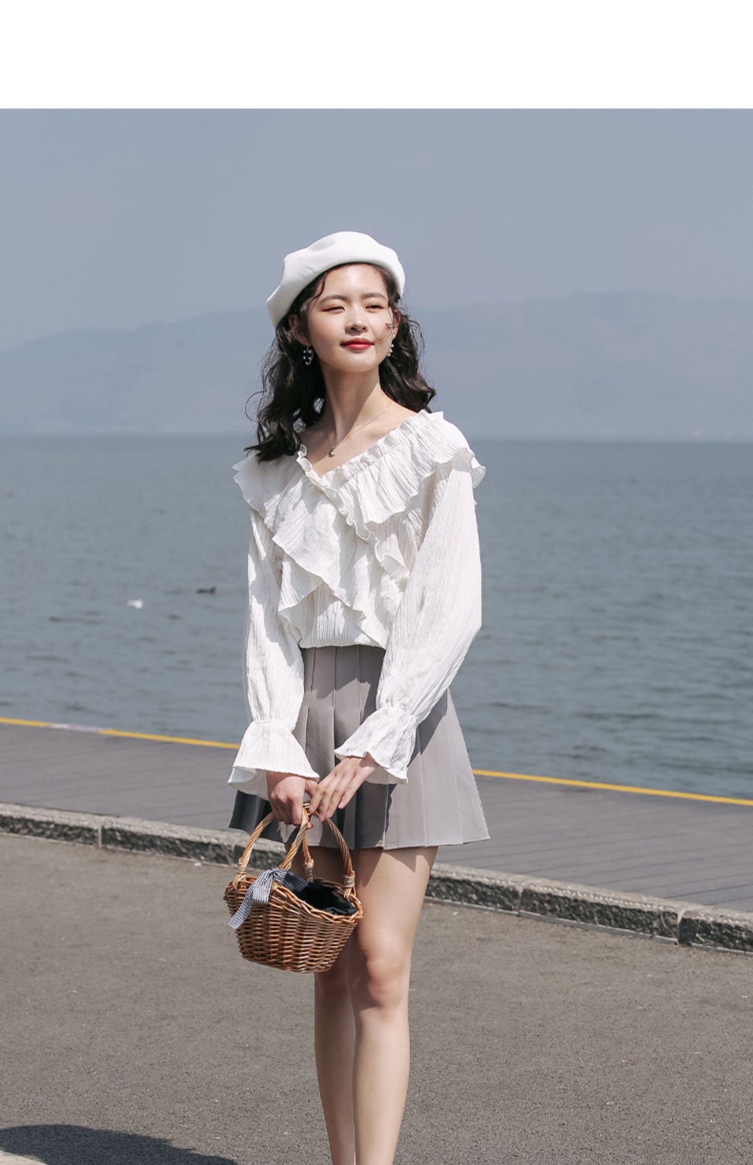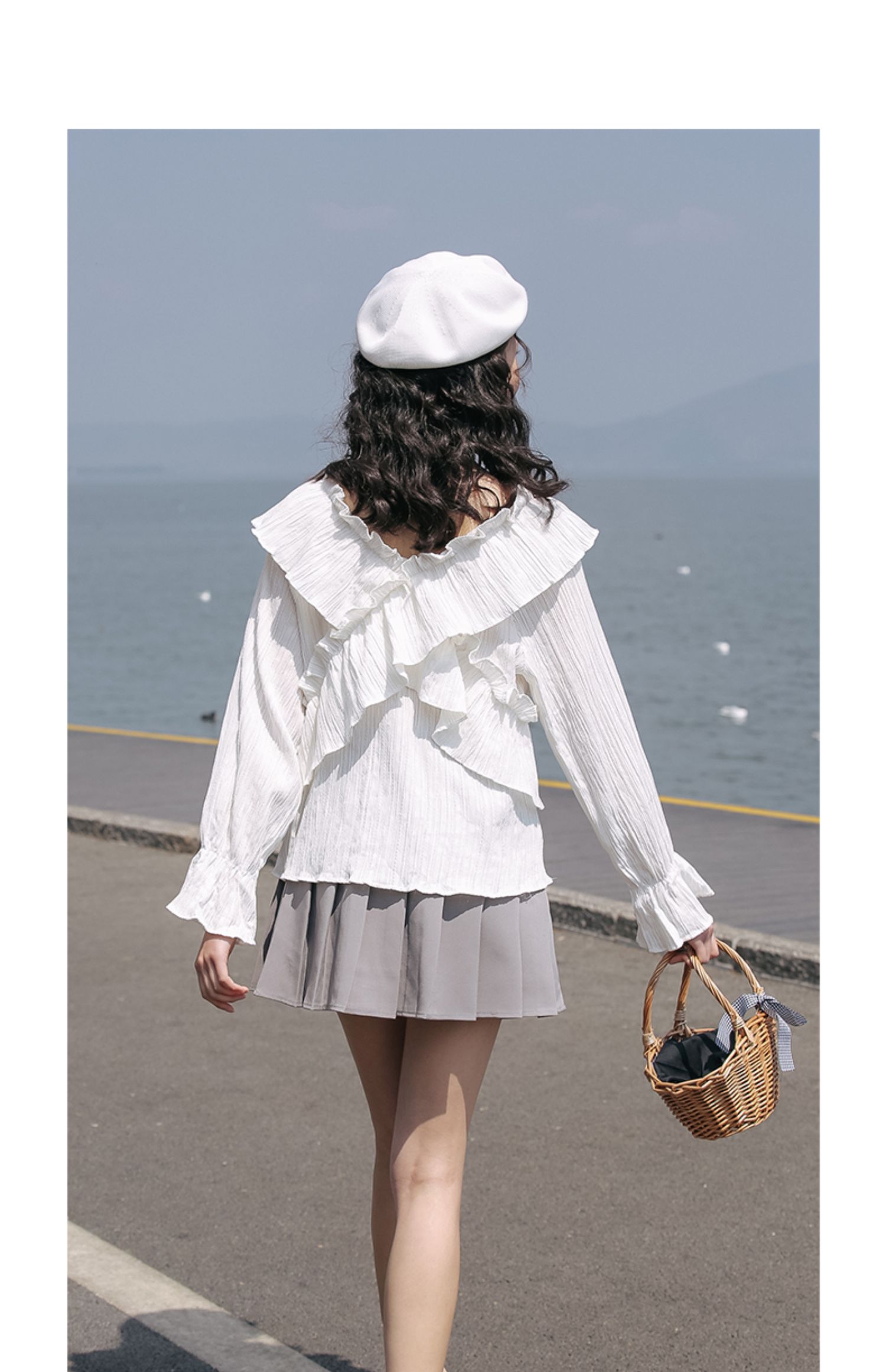 chic荷叶边甜系雪纺白衬衫女2024秋季新款V领设计感小众别致上衣