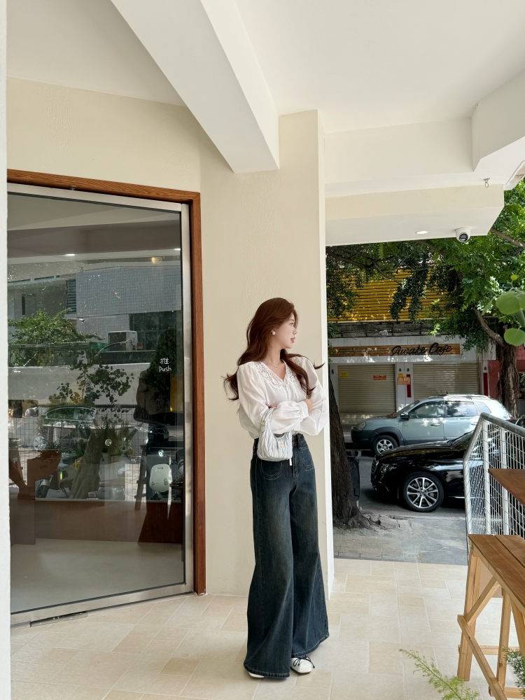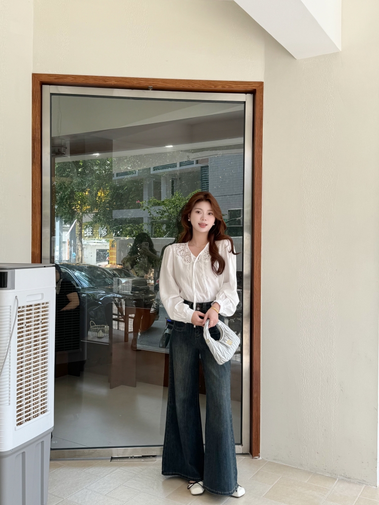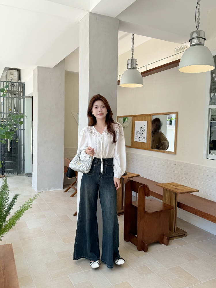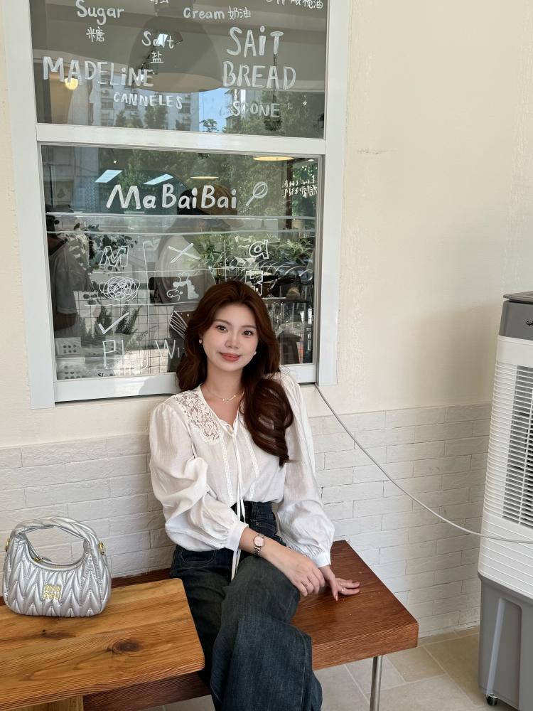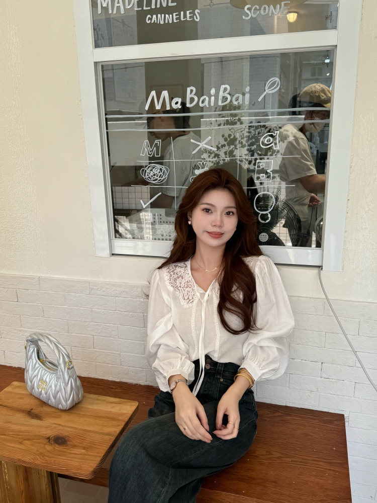 【扶桑有喻】秋季新款韩系蕾丝拼接雪纺衬衫女系带宽松气质长袖上