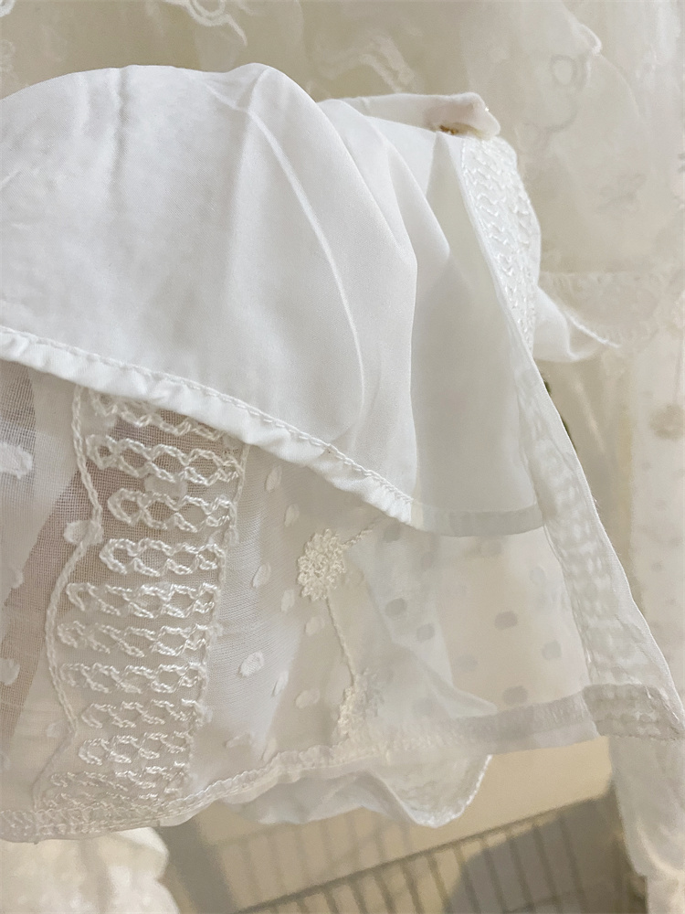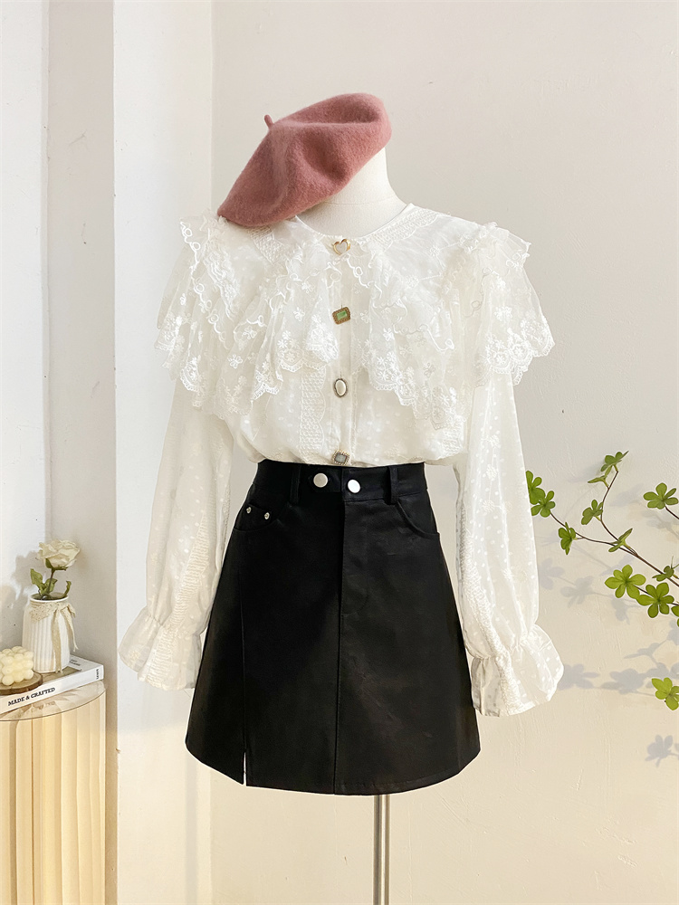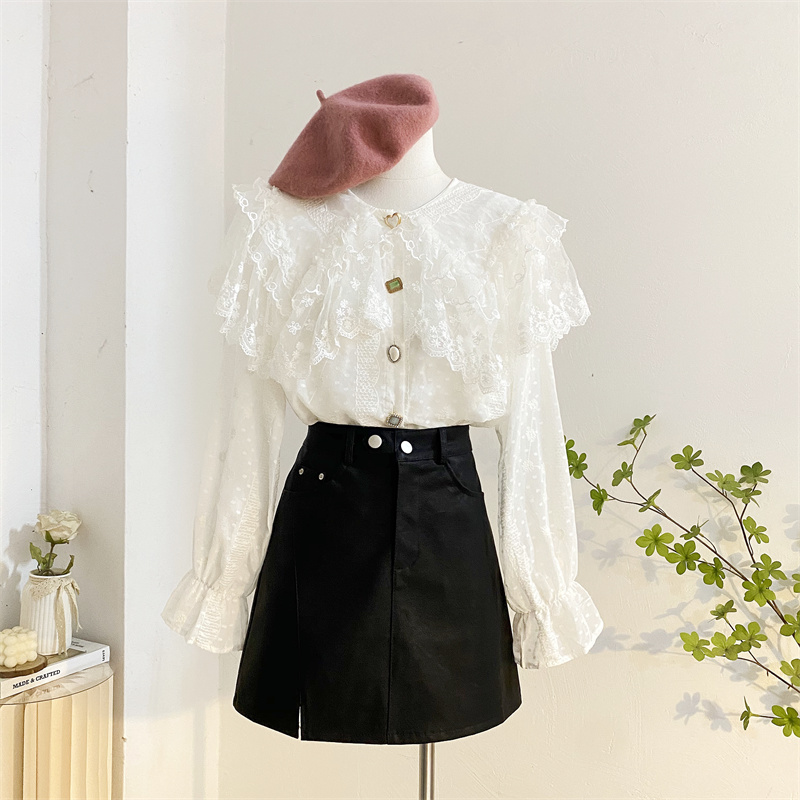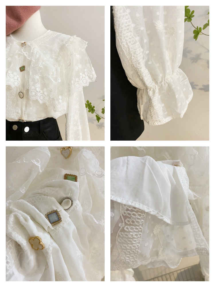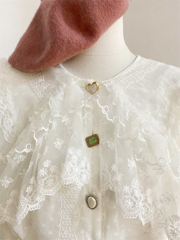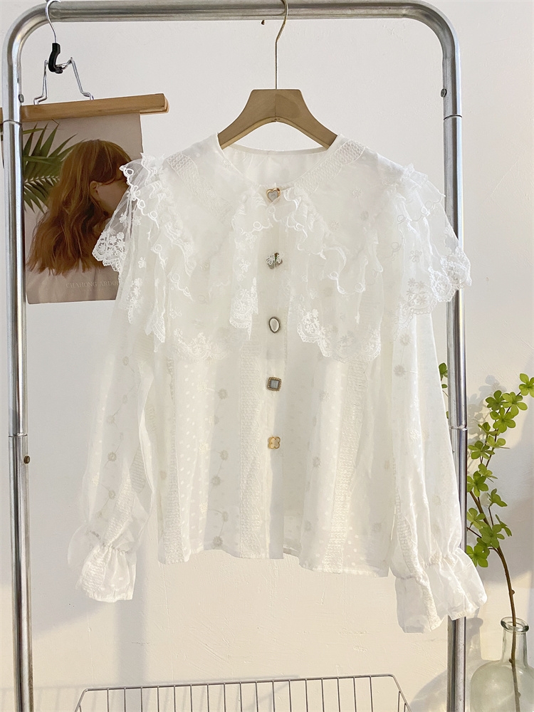 重工蕾丝花边娃娃领衬衫女秋冬设计感小众宽松甜美刺绣雪纺衫上衣