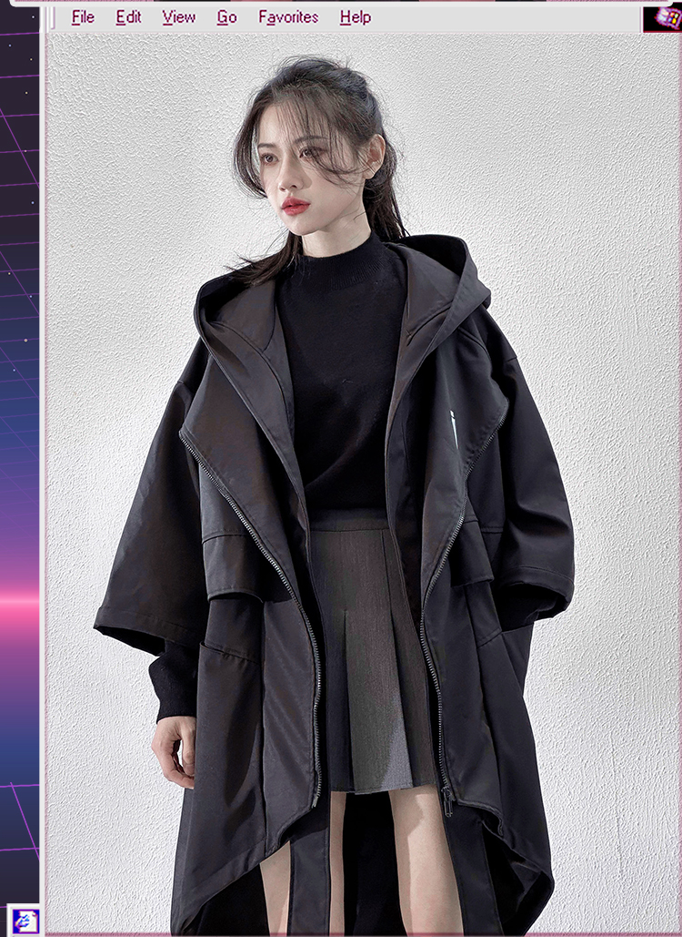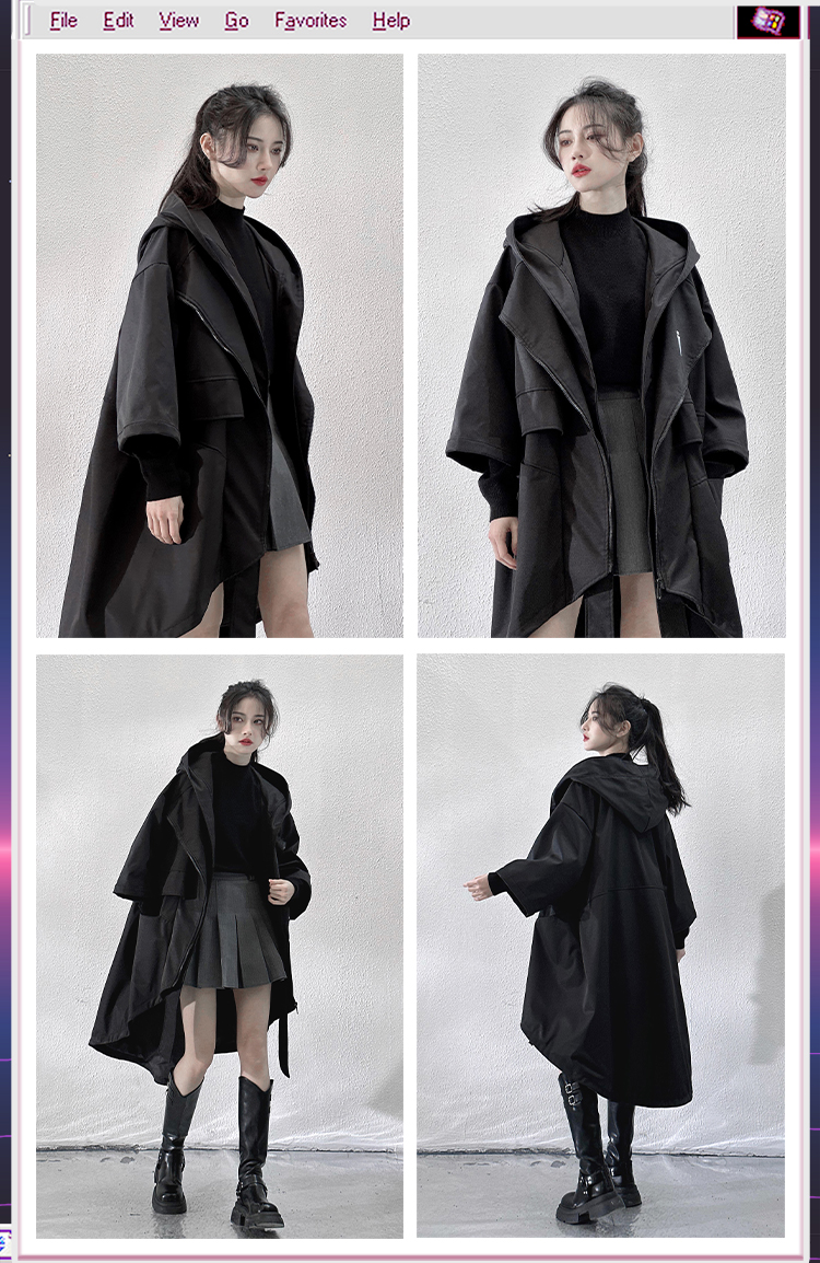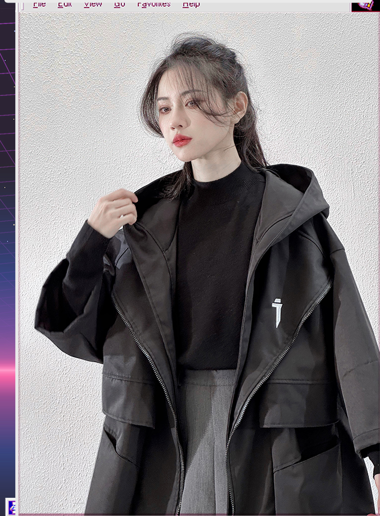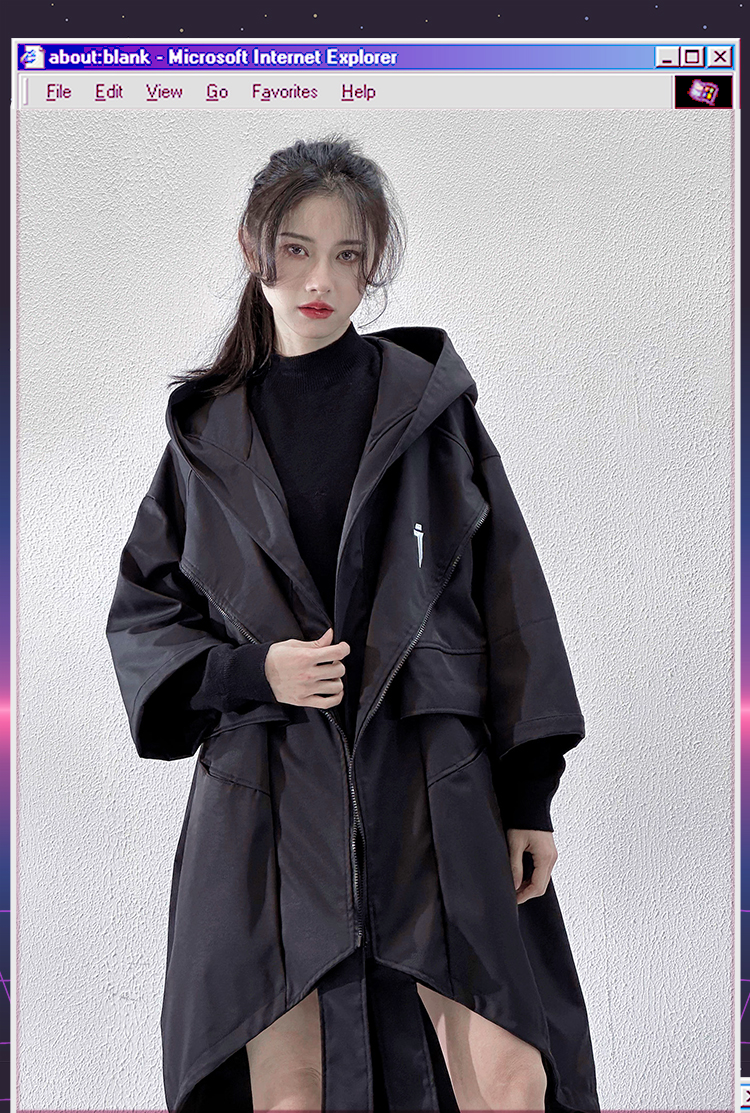 吉业重工2024春秋款魔法学院中袖风衣男女宽松休闲中长款连帽外套