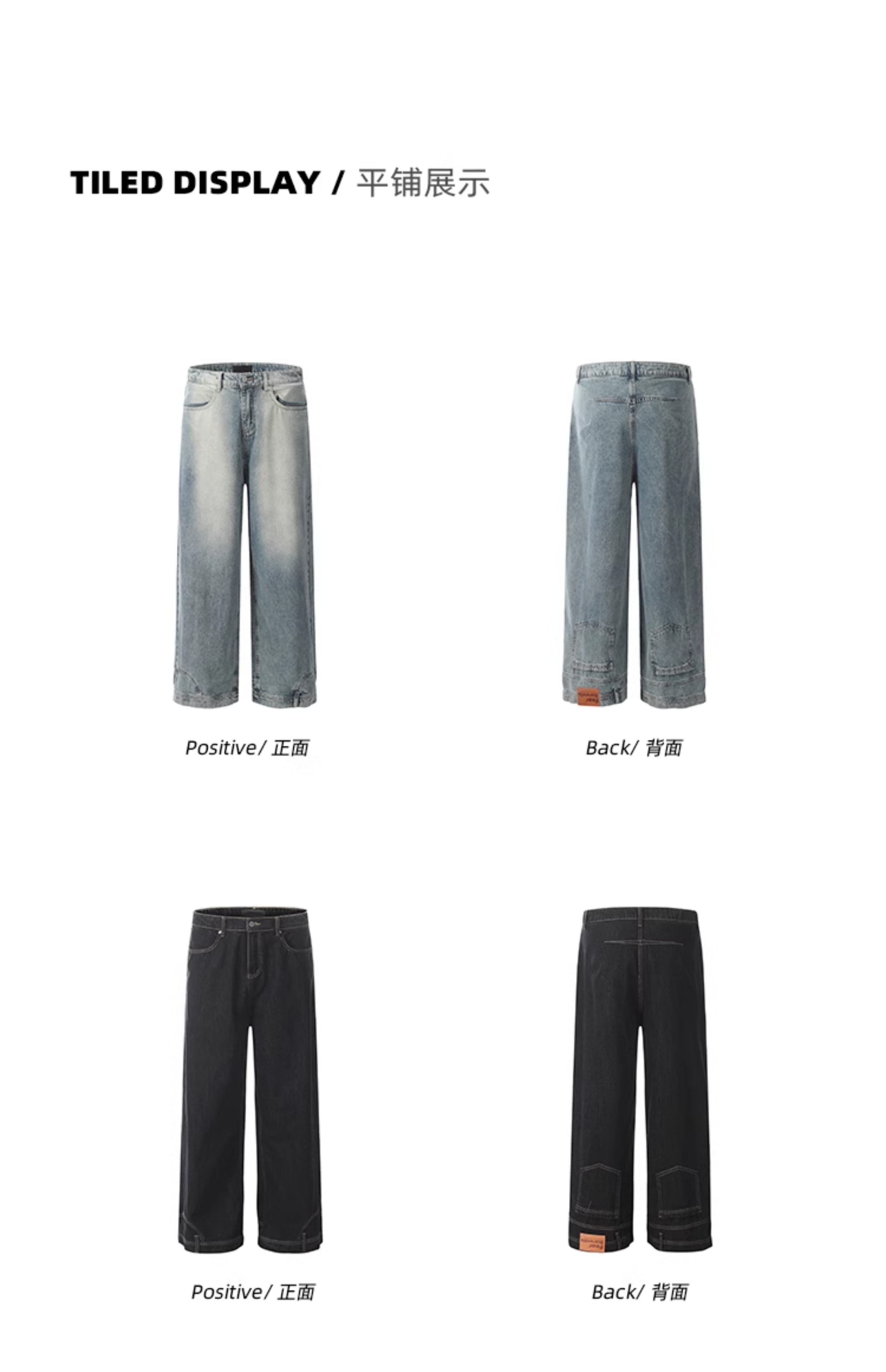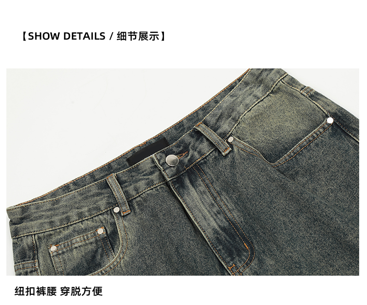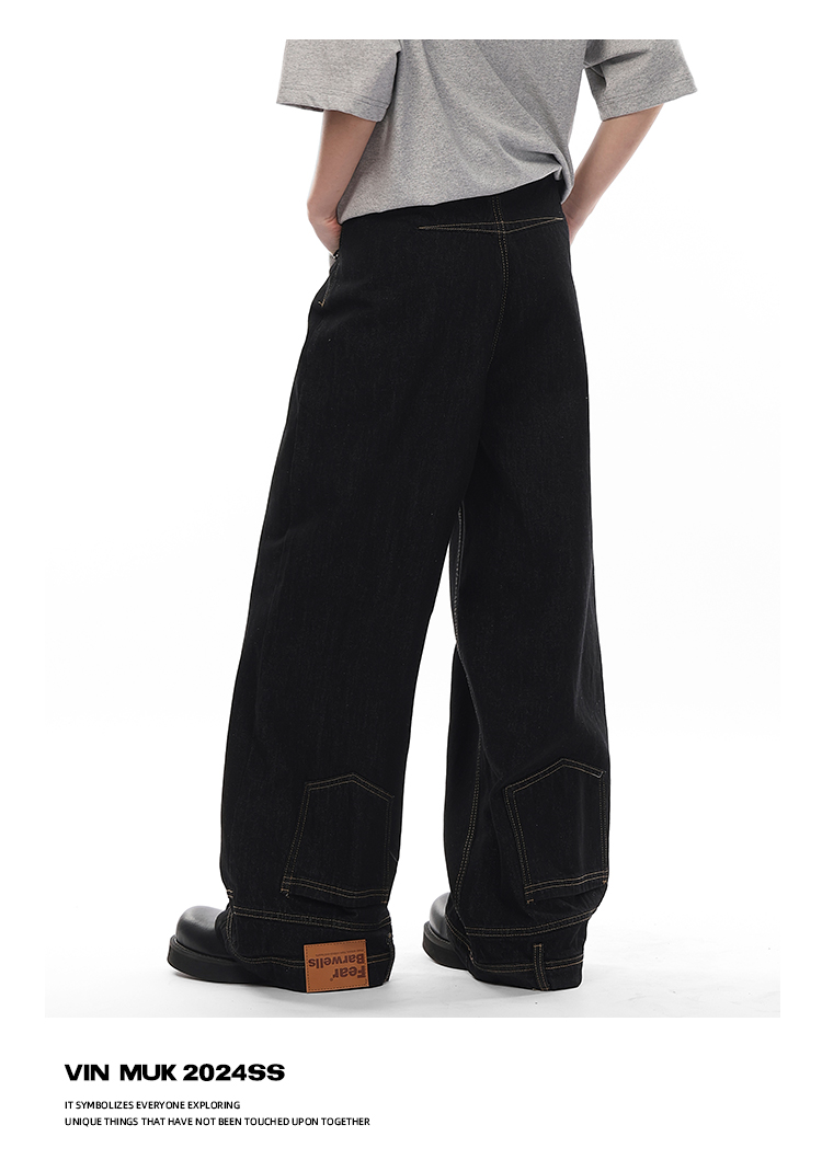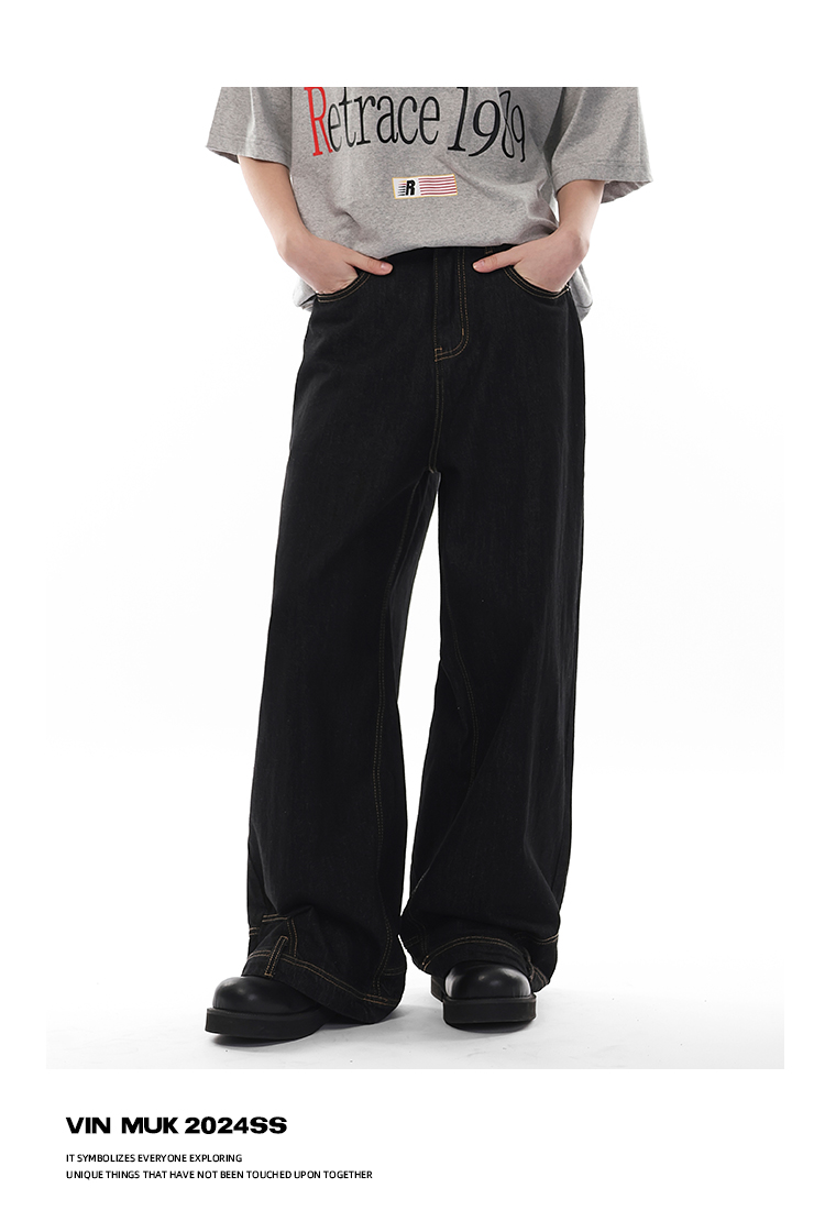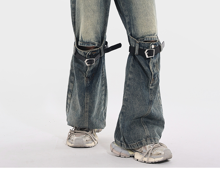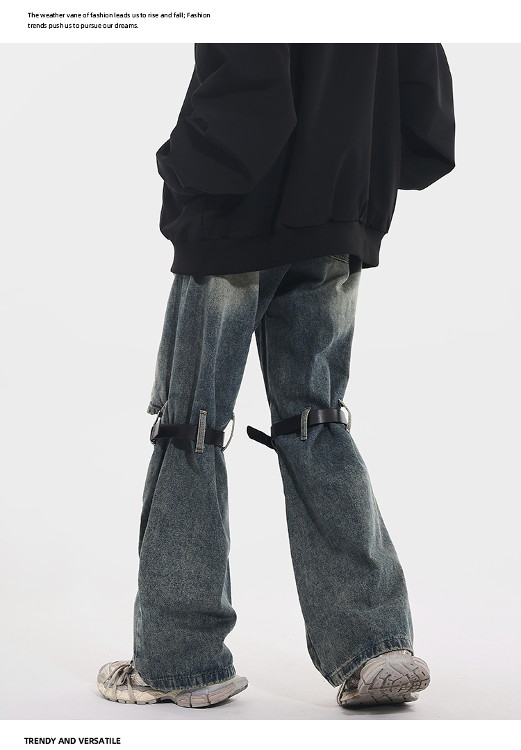 VIN MUK 美式复古水洗做旧微喇牛仔裤高腰皮带拼接设计感长裤子女