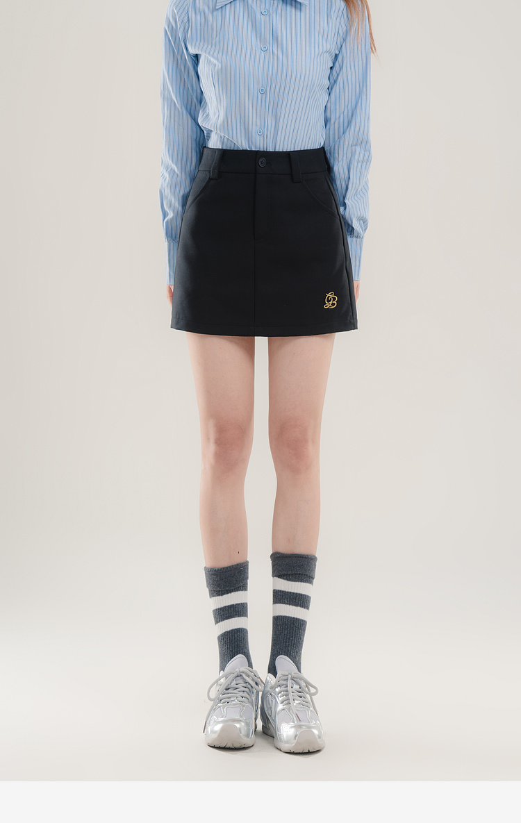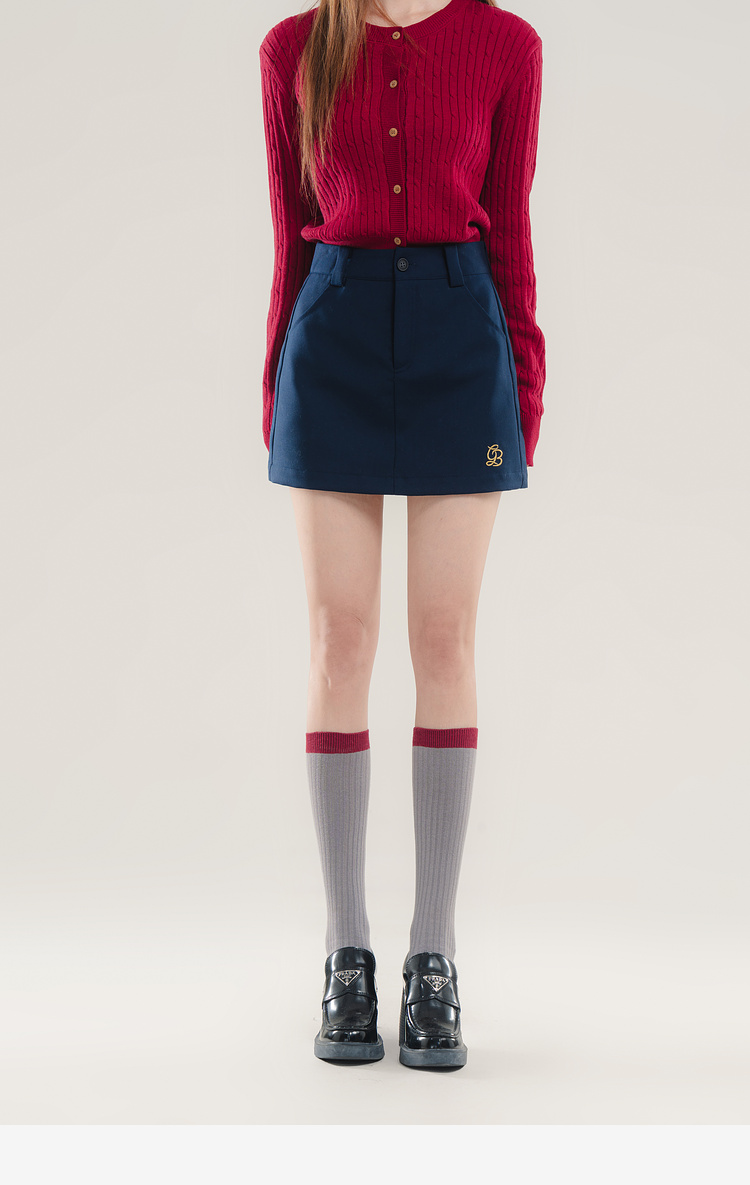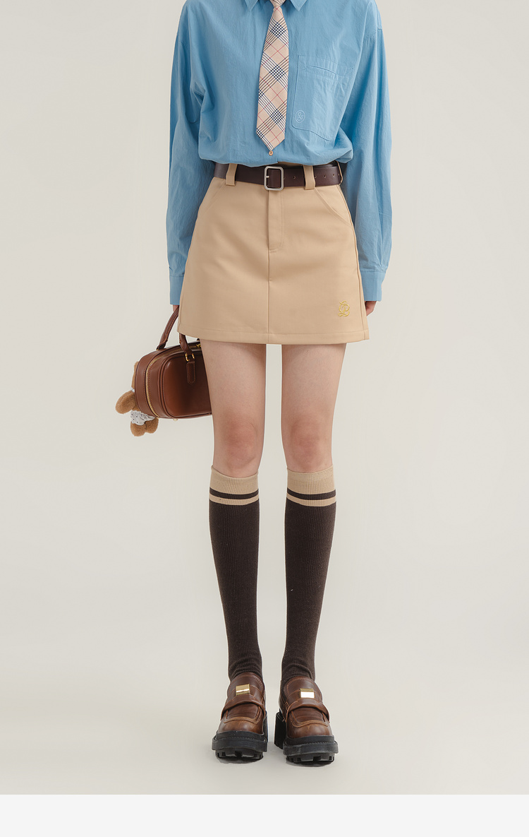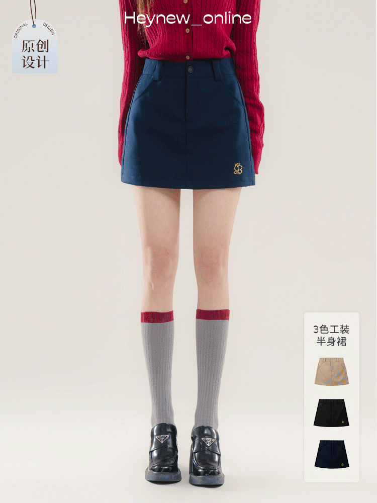 LOVEHEYNEW美式藏青色a字半身裙女2024新品秋装高腰西装包臀短裙