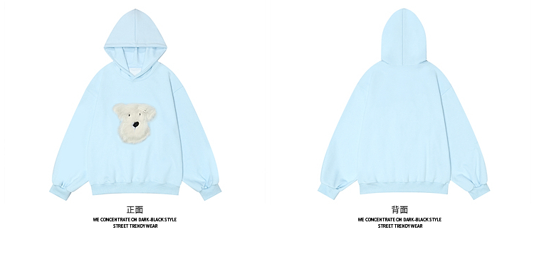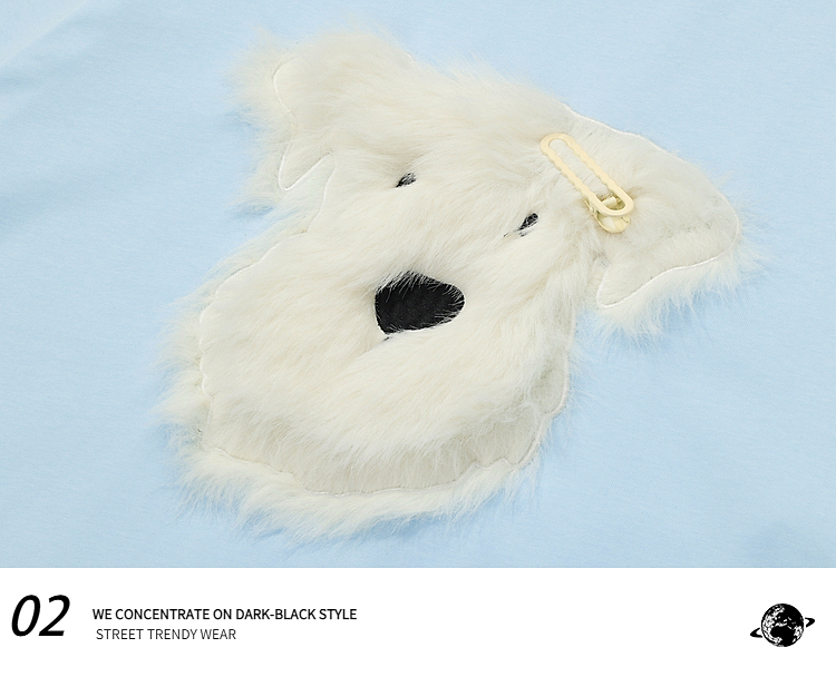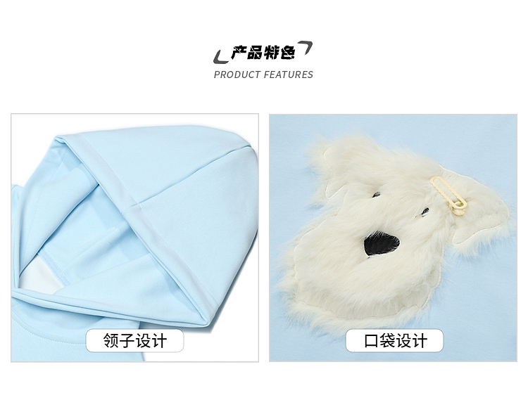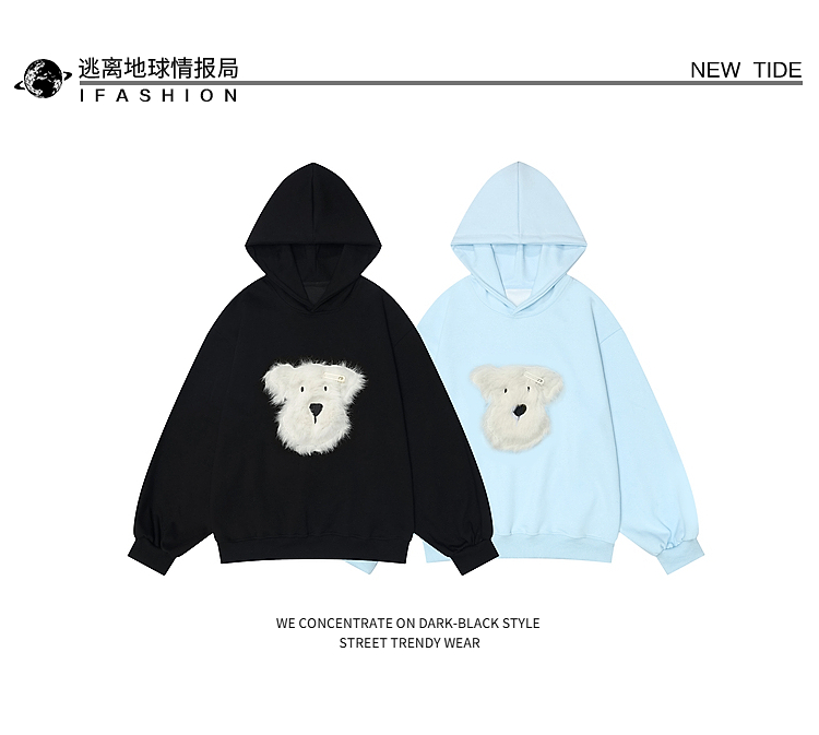 可爱毛绒小狗黑色连帽卫衣外套女秋季宽松情侣装美式复古上衣潮牌