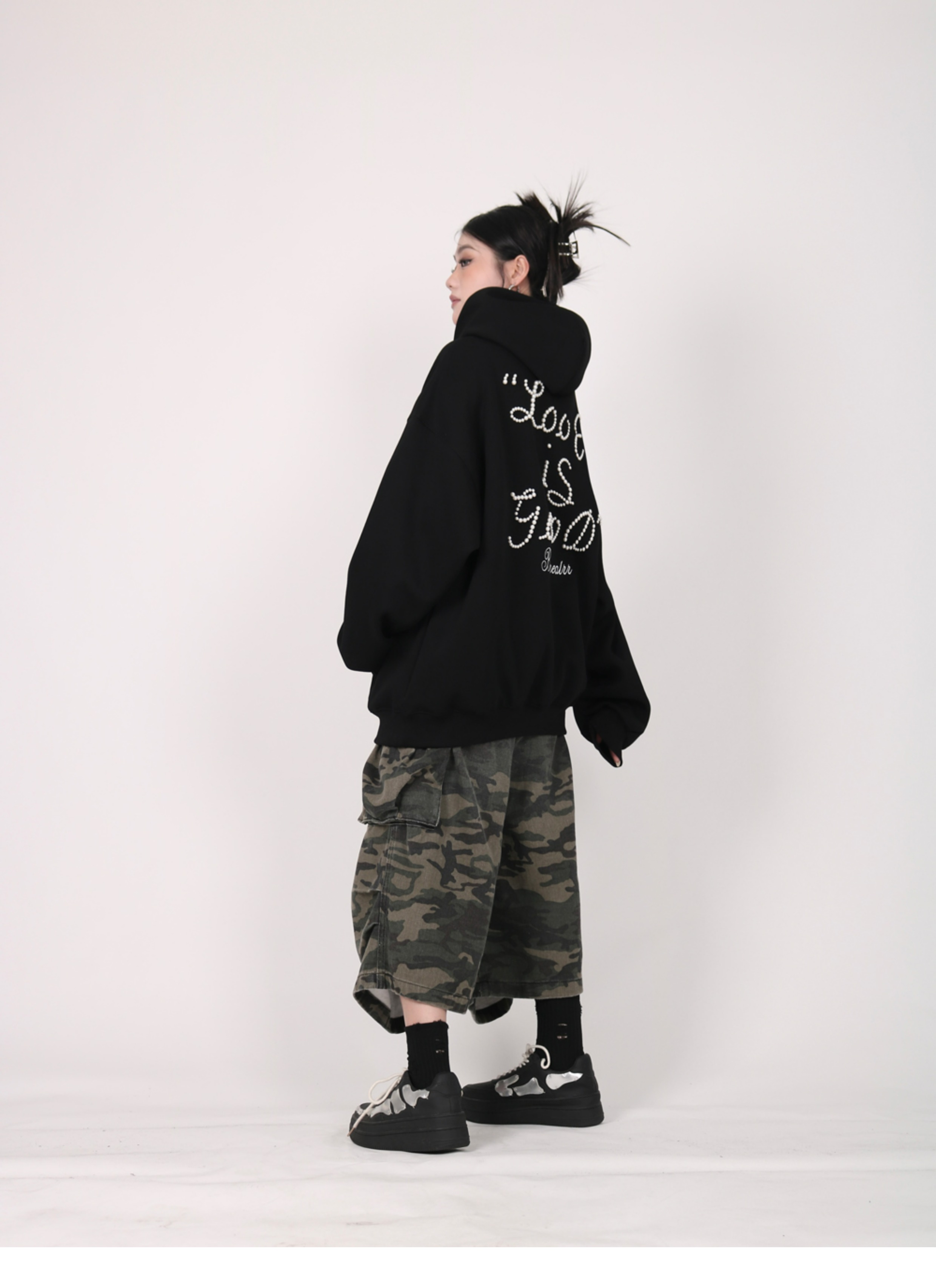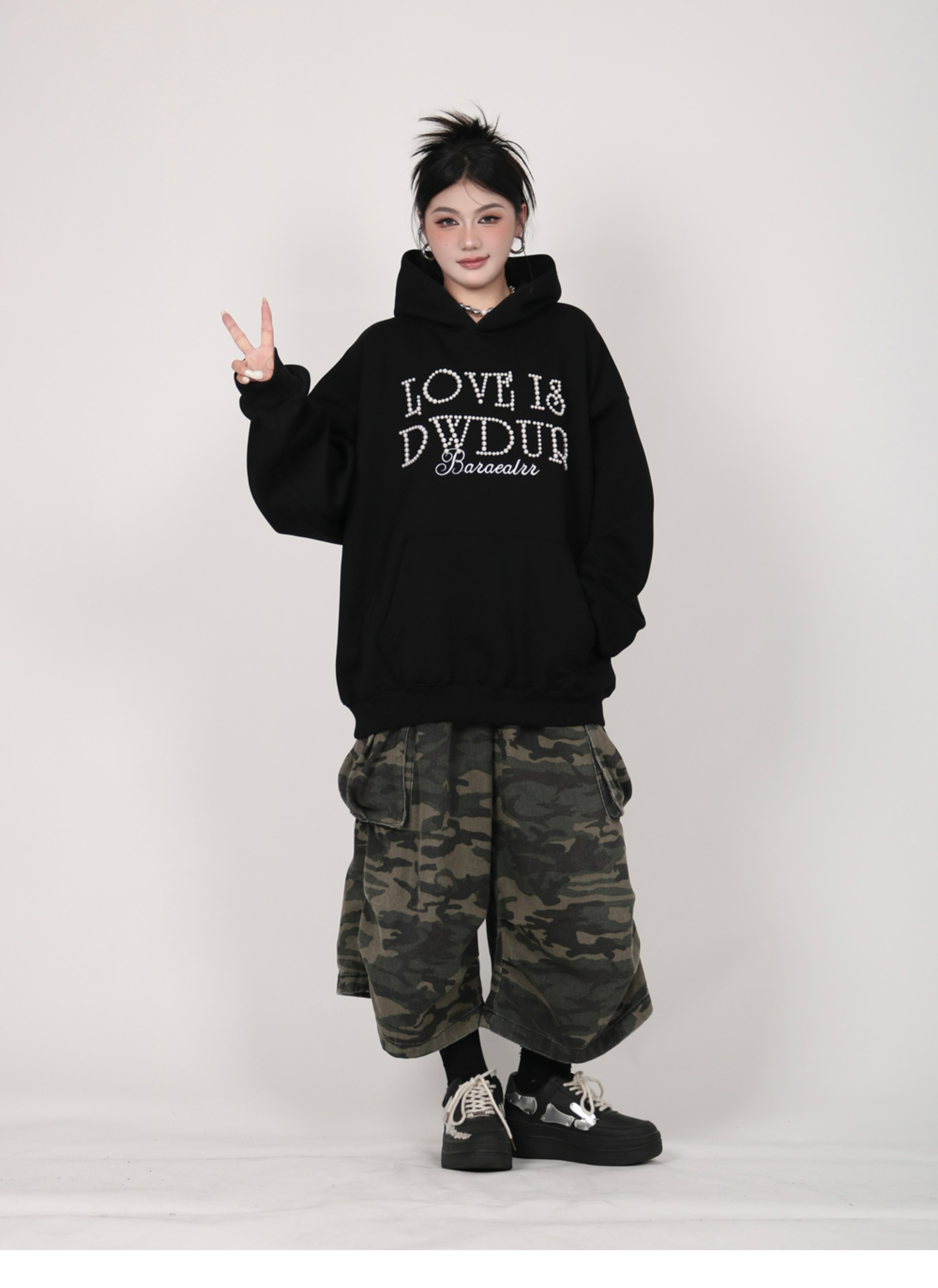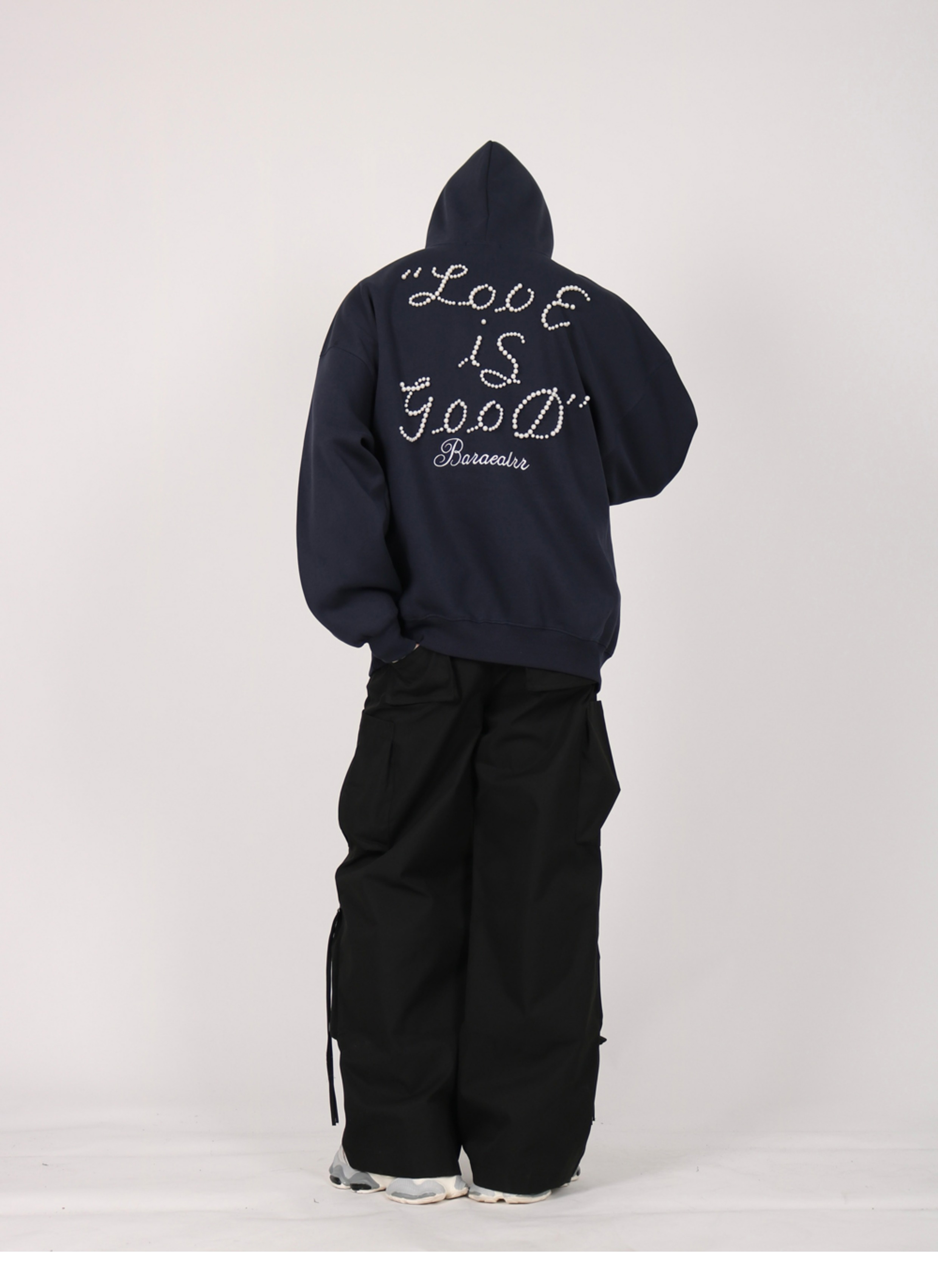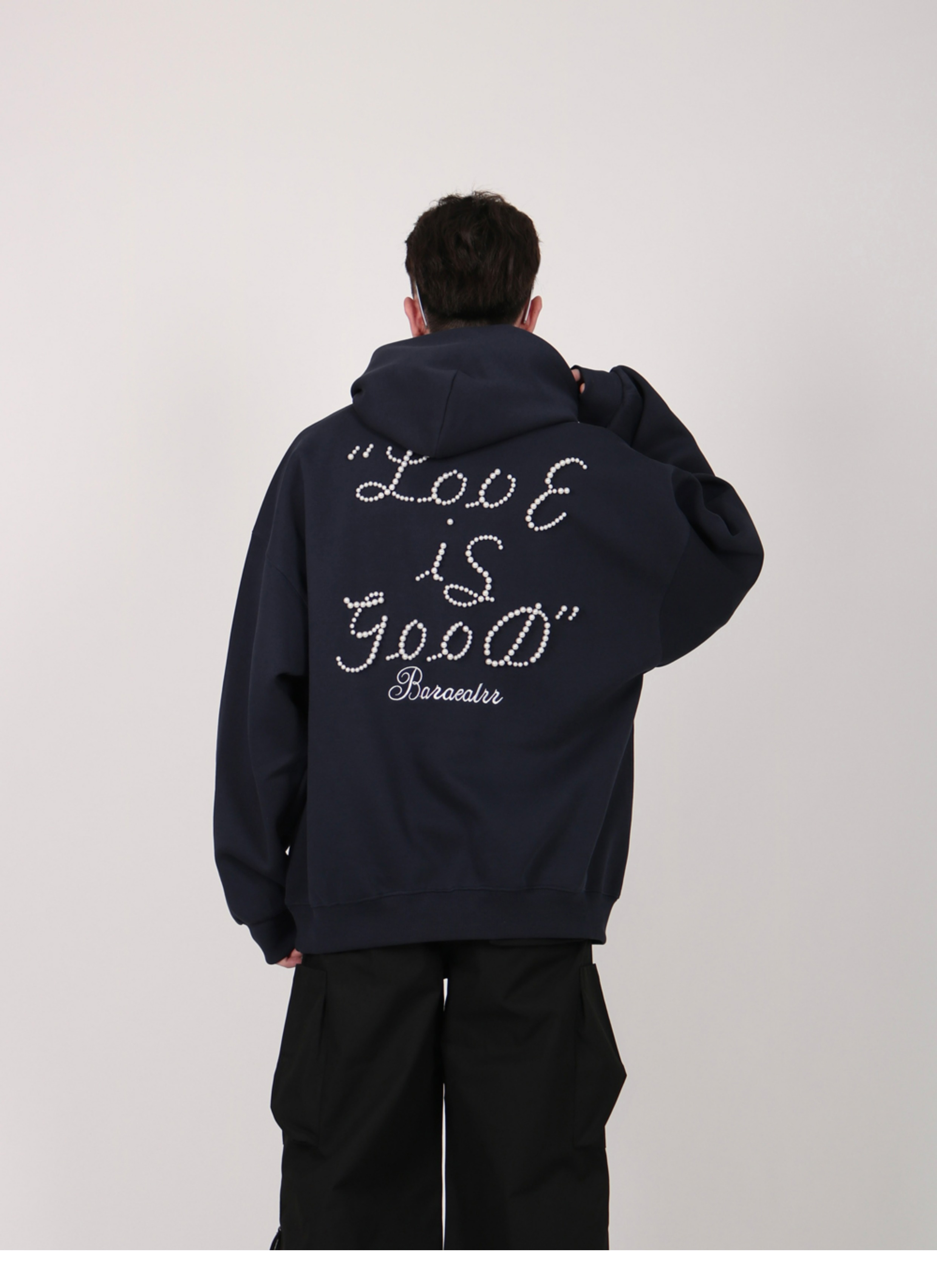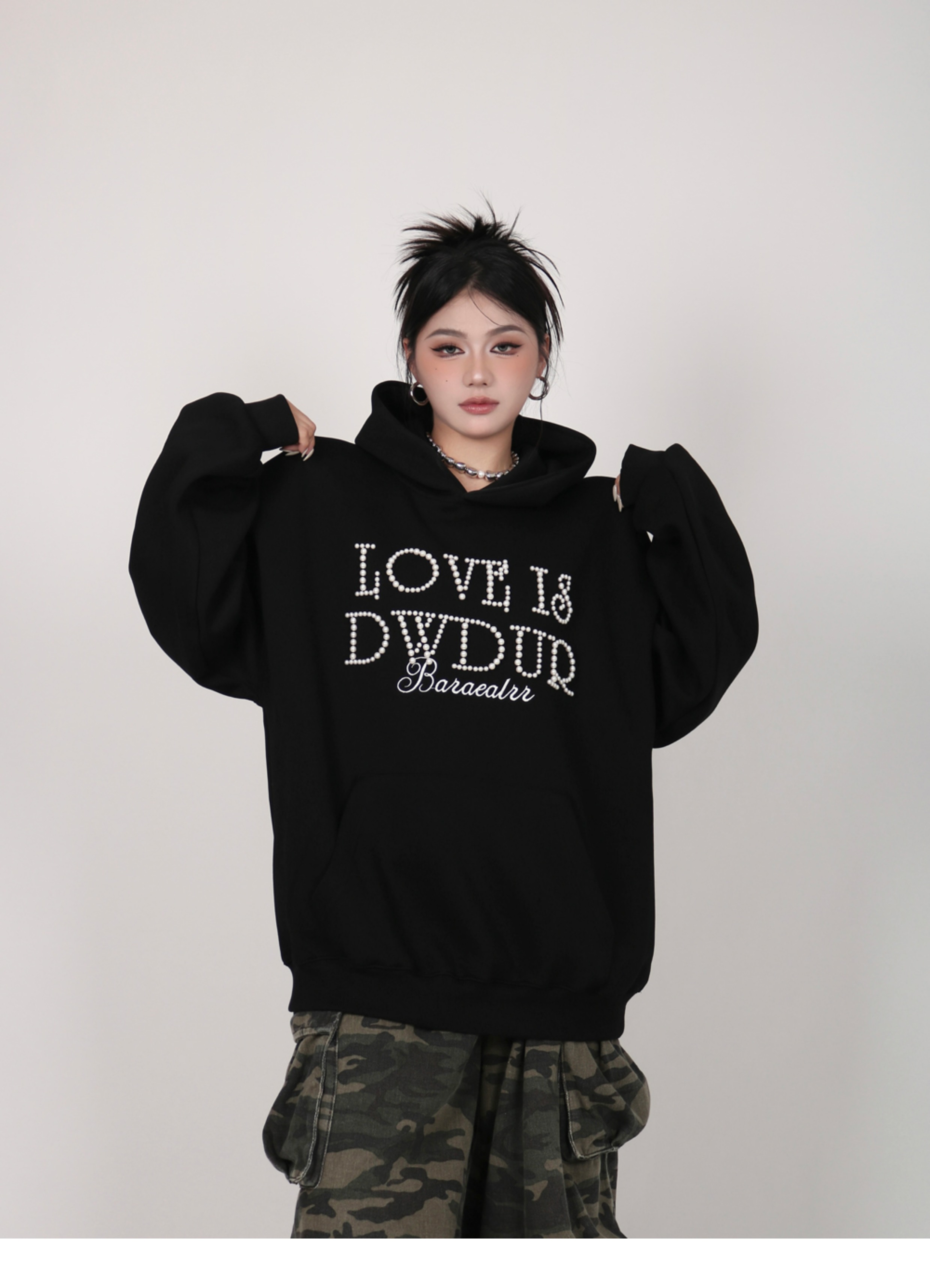 INGA美式复古小众设计感珍珠字母红色卫衣女秋冬小众上衣情侣外套