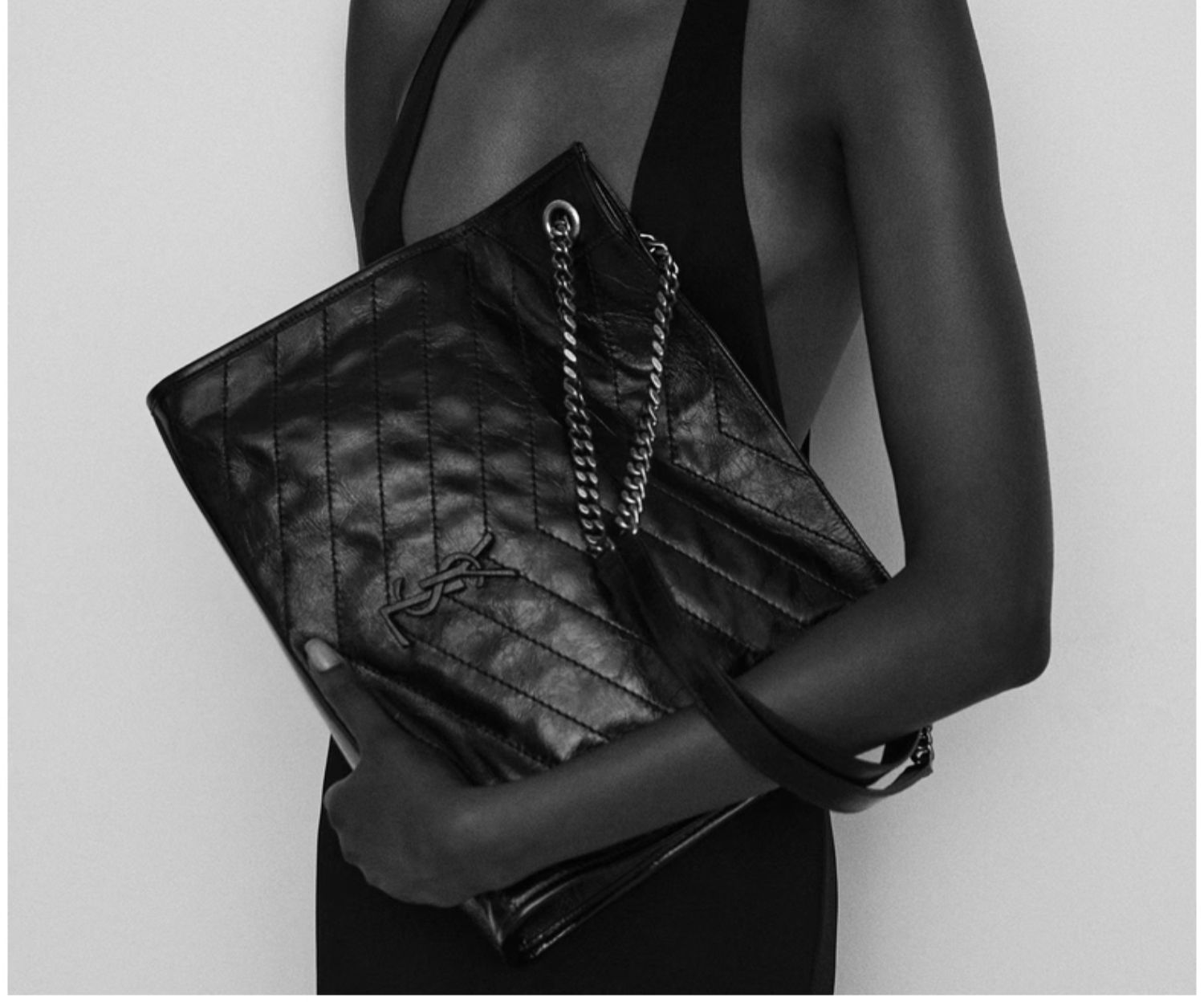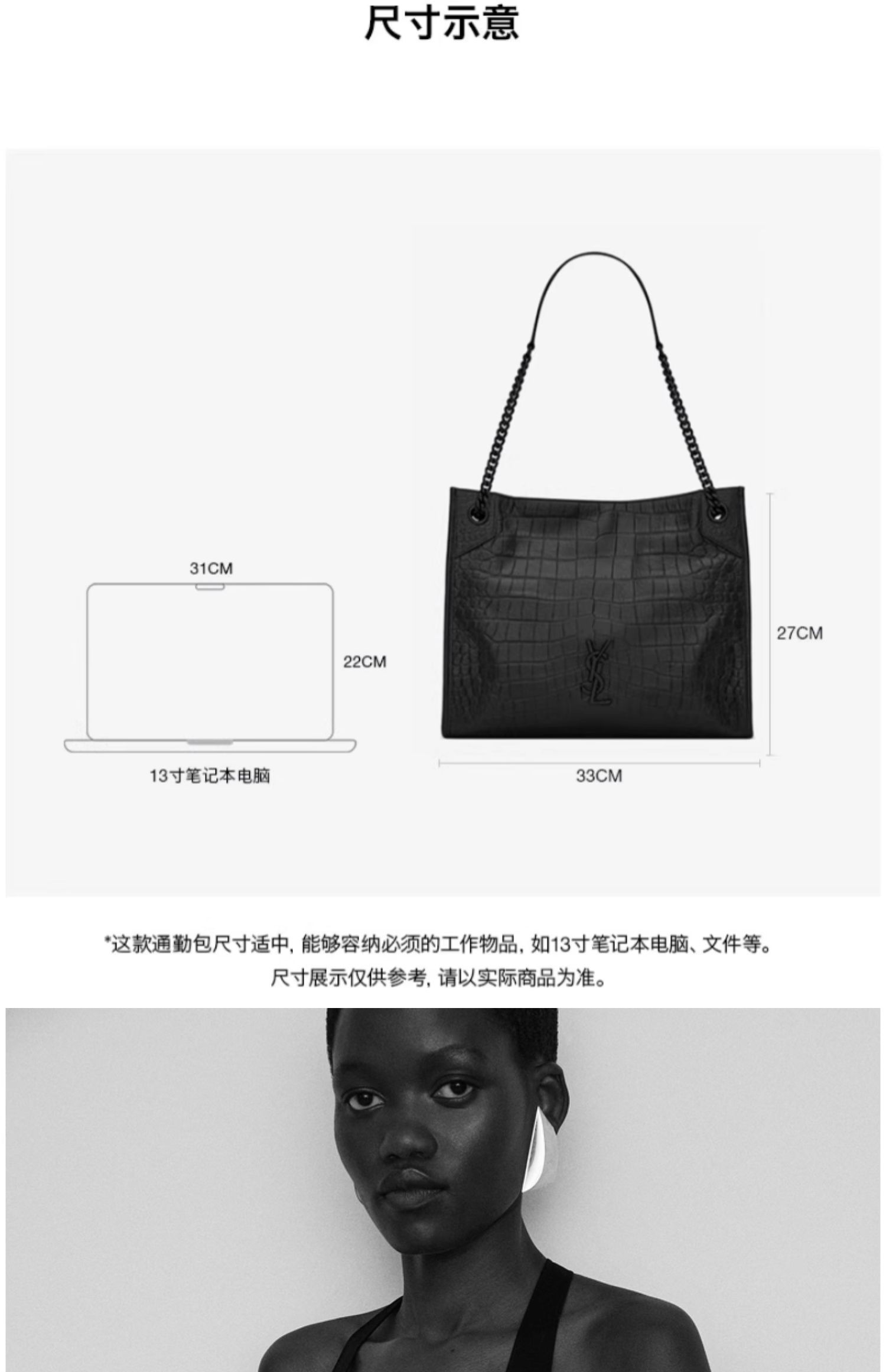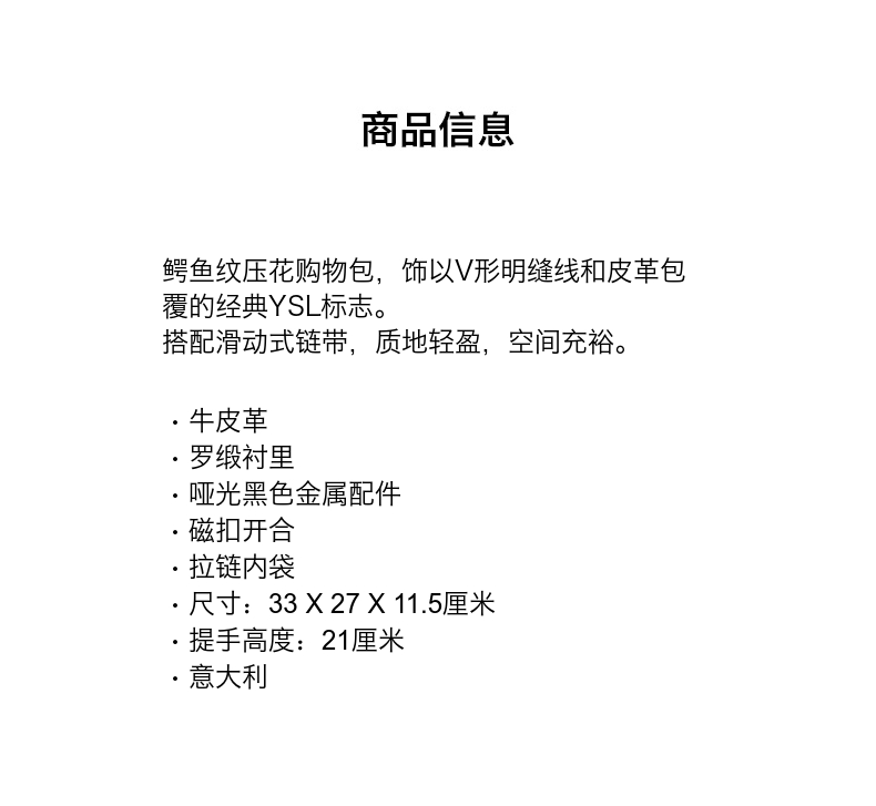 YSL/圣罗兰女士黑色NIKI鳄鱼纹中号购物ysl包ysl包包