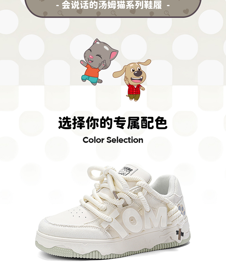 会说话的汤姆猫鞋子面包鞋男款板鞋2024新款春秋透气情侣小白鞋女
