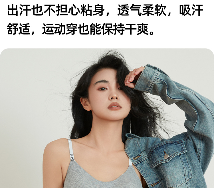 螺纹无痕运动内衣女小胸聚拢提拉收副乳防下垂防震无钢圈美背文胸