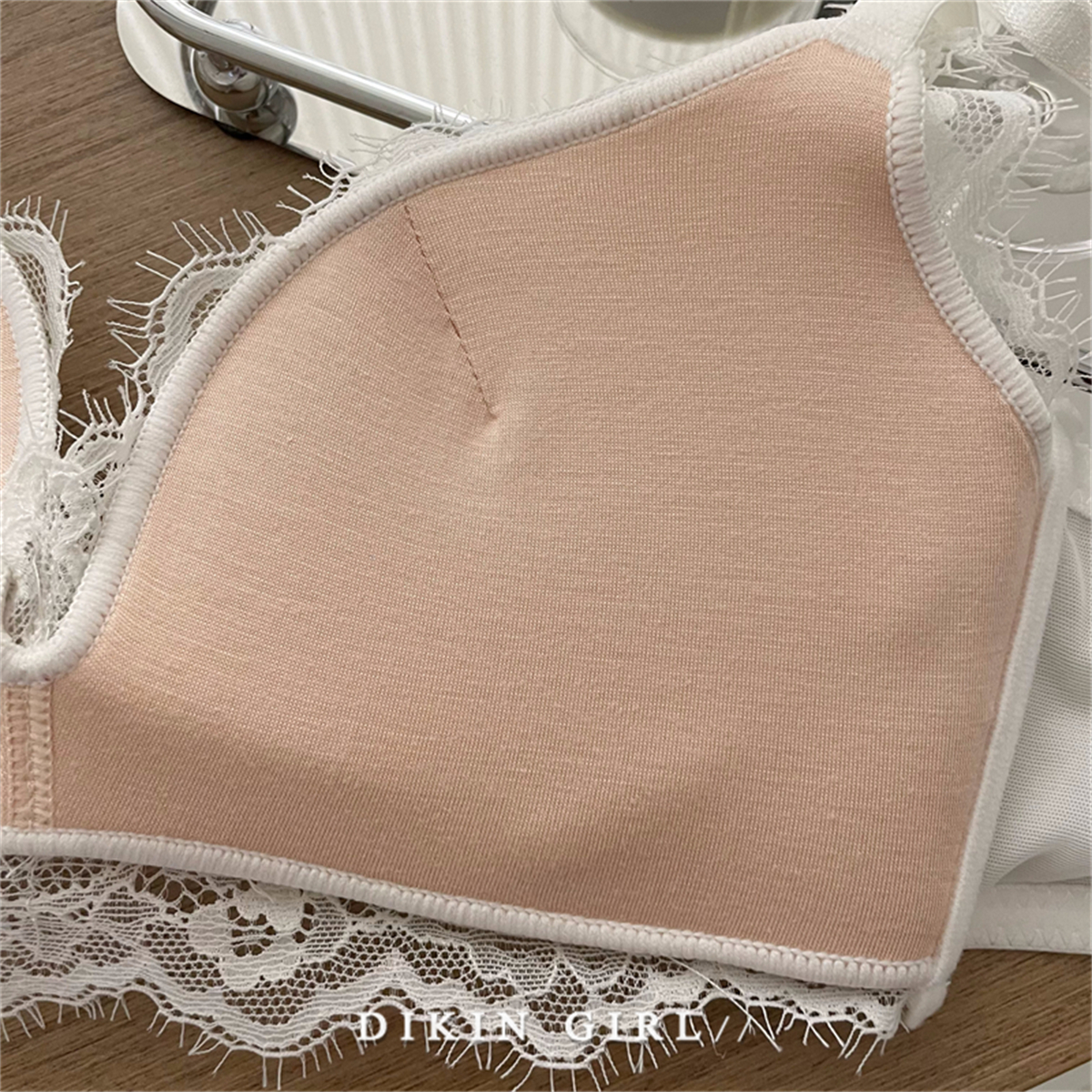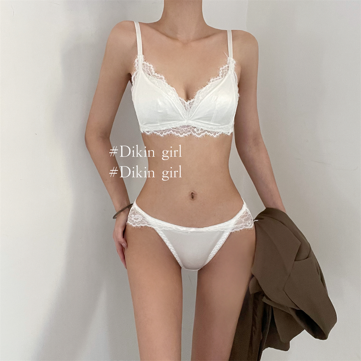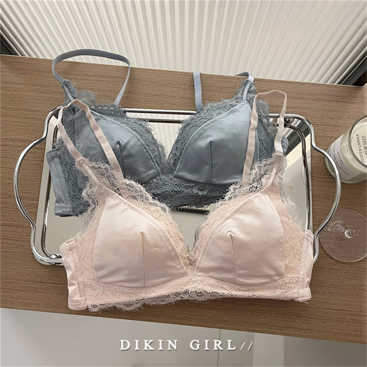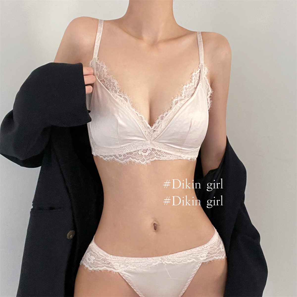 小胸聚拢内衣女薄款显大胸三角杯无钢圈蕾丝文胸罩套装法式防下垂