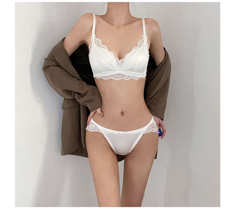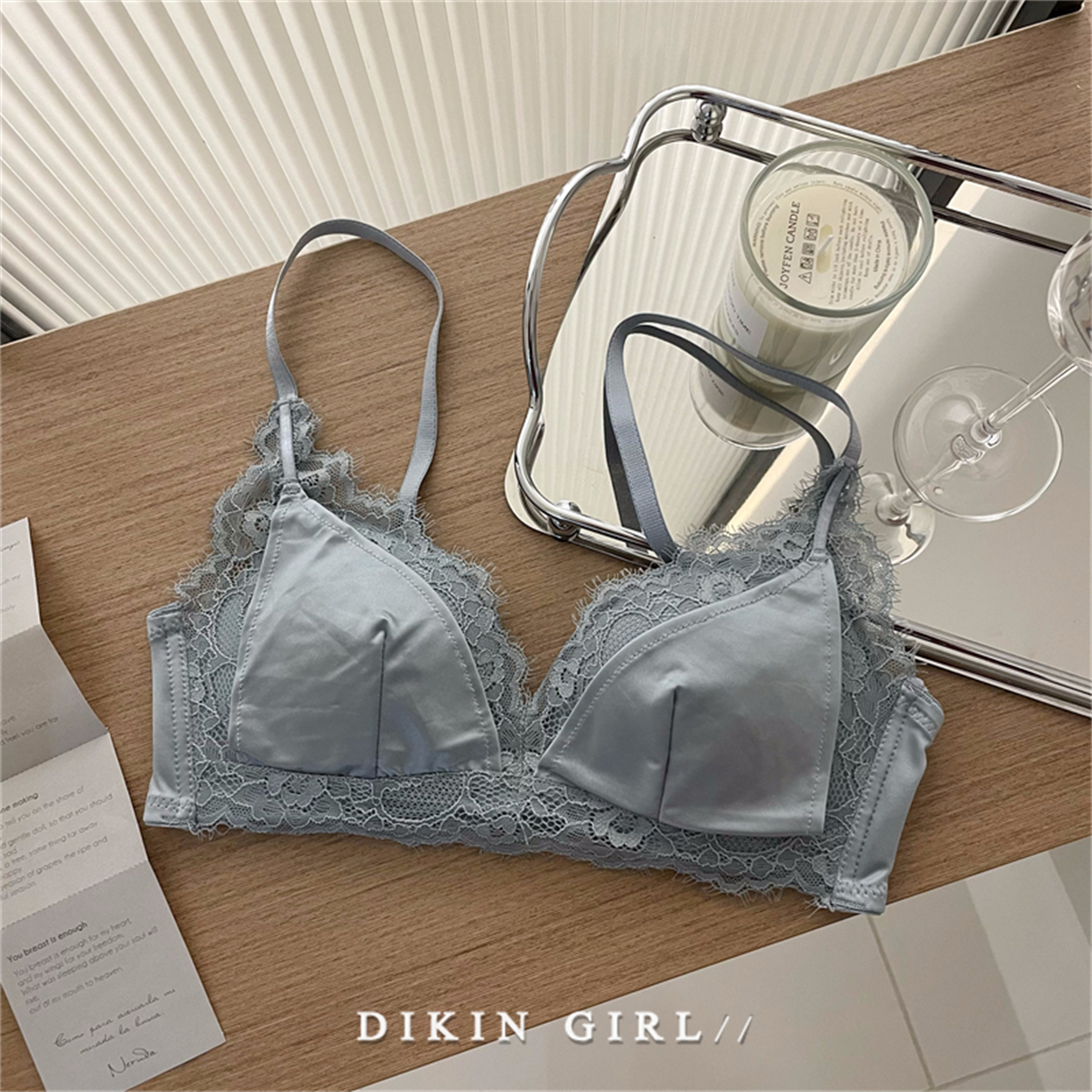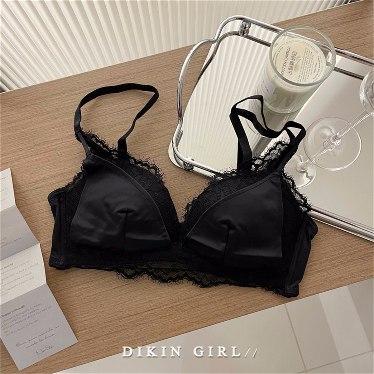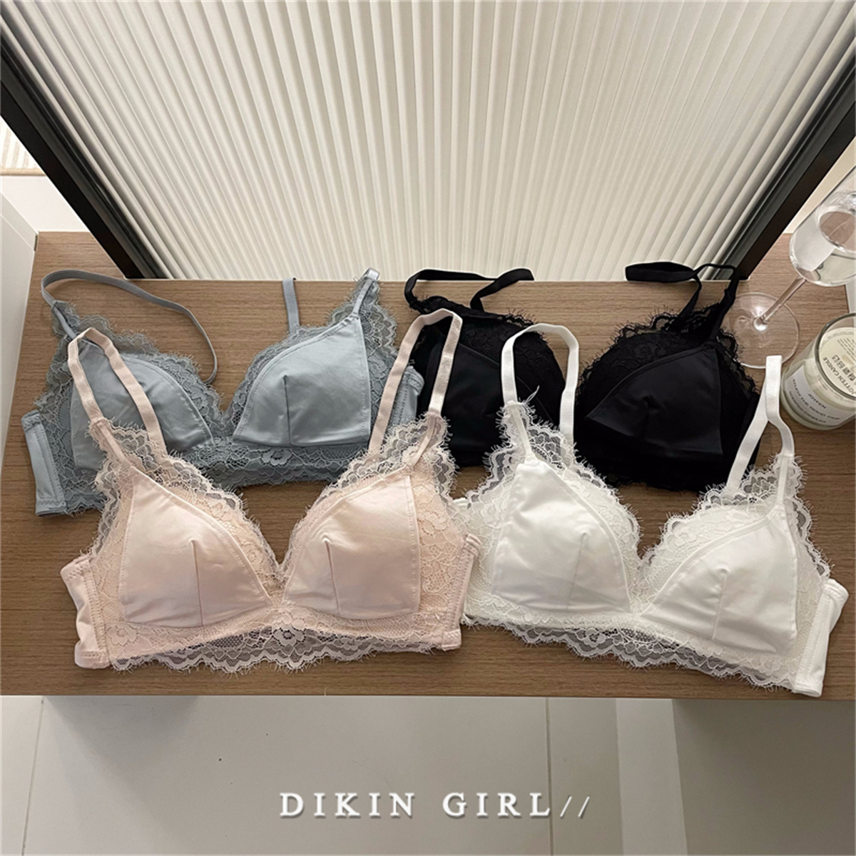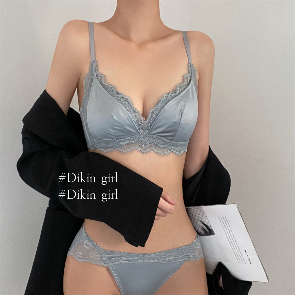 小胸聚拢内衣女薄款显大胸三角杯无钢圈蕾丝文胸罩套装法式防下垂