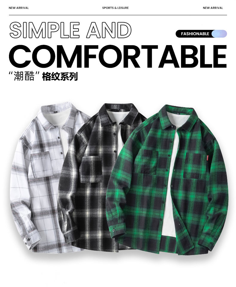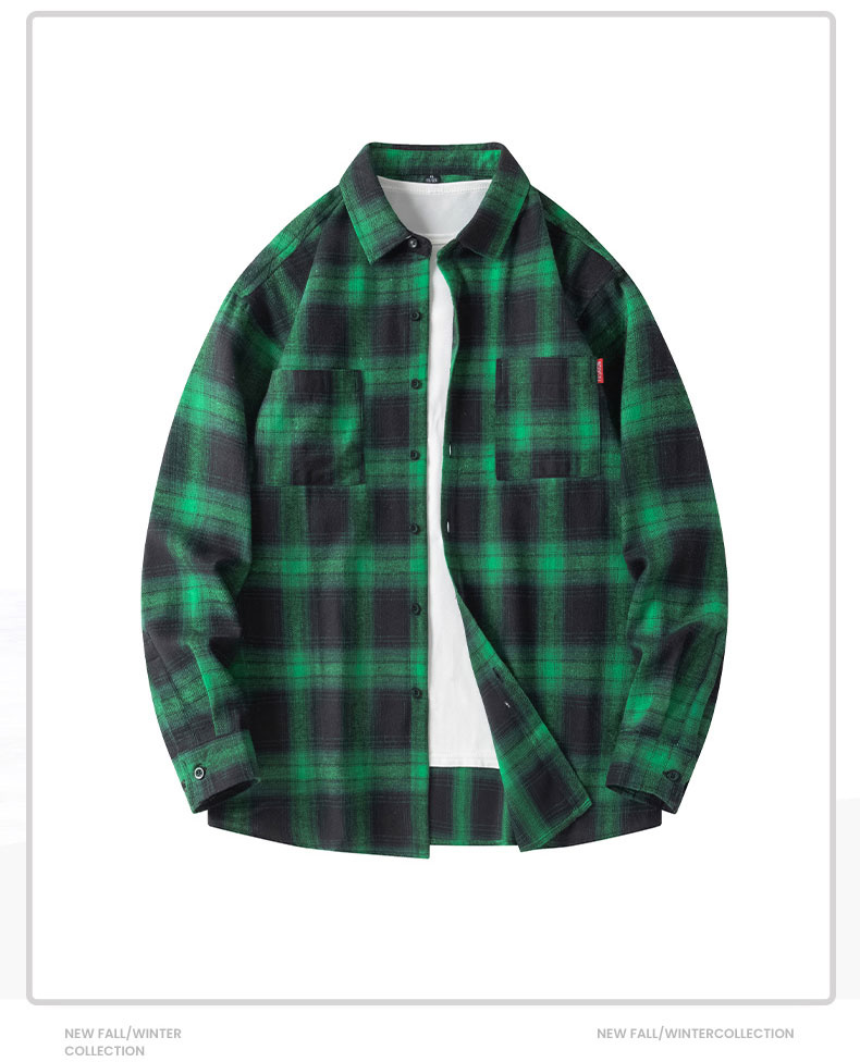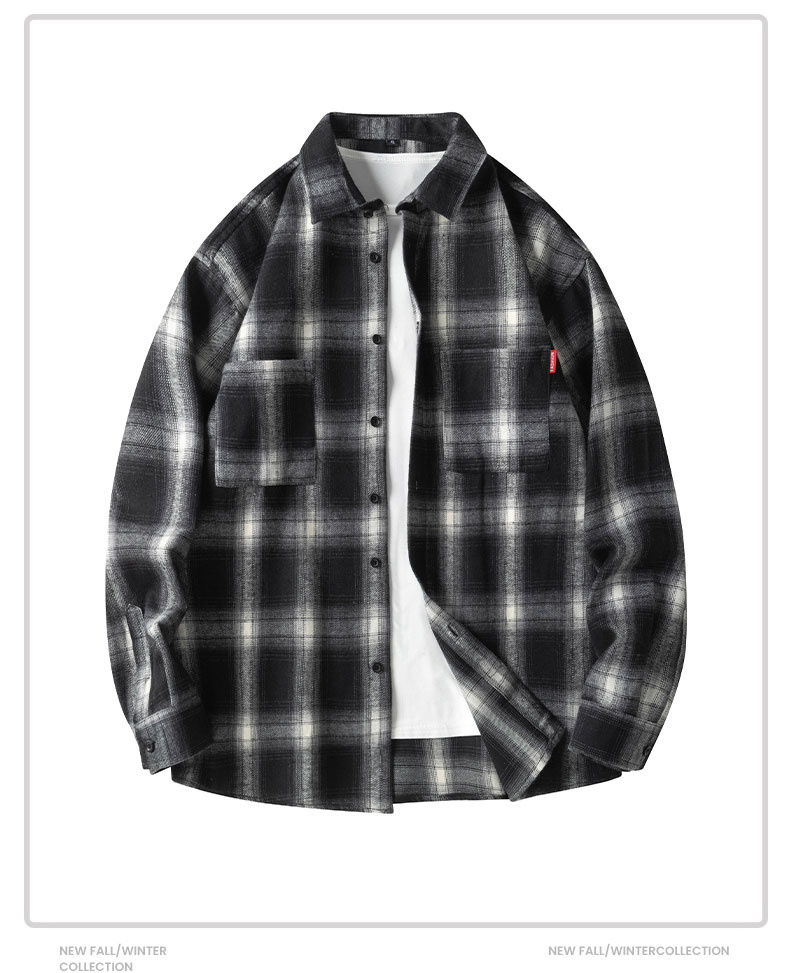 森马集团GLM格子长袖衬衫男款早秋2024新款百搭美式复古衬衣外套