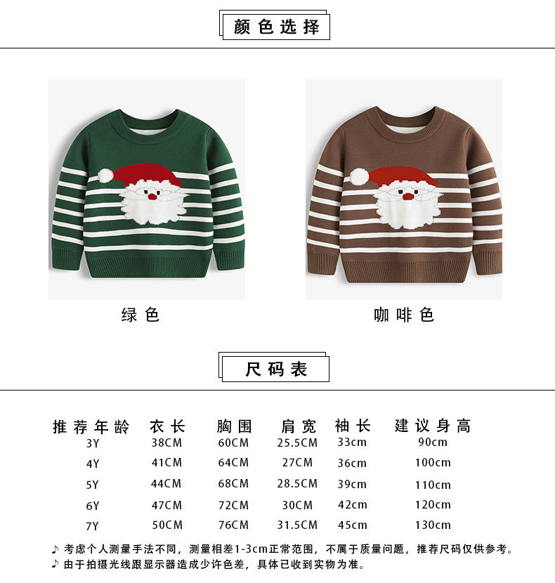 2024新款秋冬欧美儿童圣诞节可爱老人打底毛衣男女宝宝套头针织衫