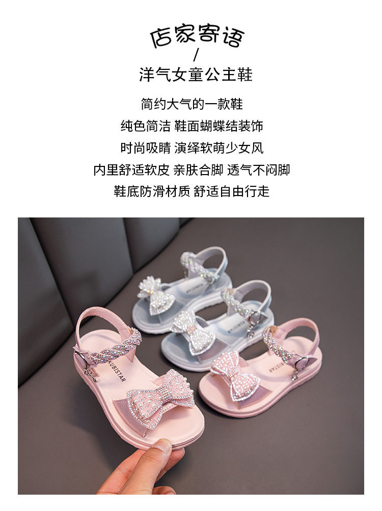 回力儿童公主凉鞋蝴蝶结2024夏季新款时尚女童凉鞋软底女孩休闲耐
