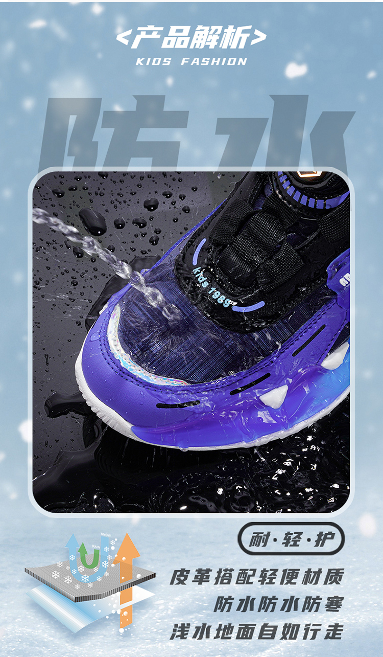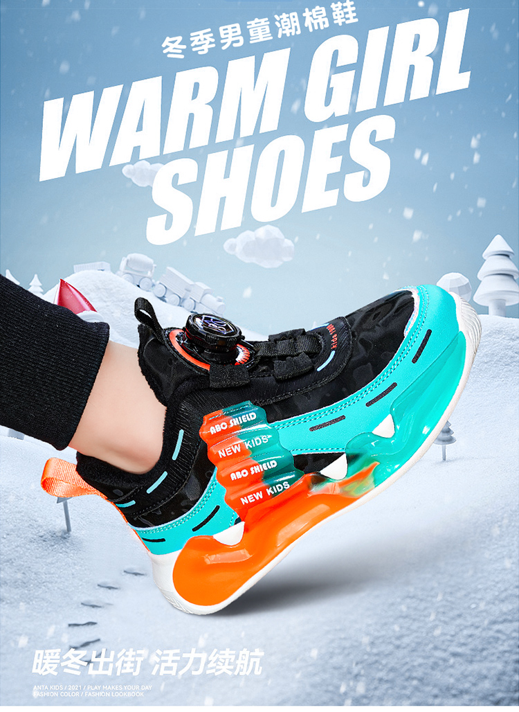 ABC男童鞋子冬季加绒加厚儿童棉鞋9女童运动鞋7保暖二棉鞋子8学生